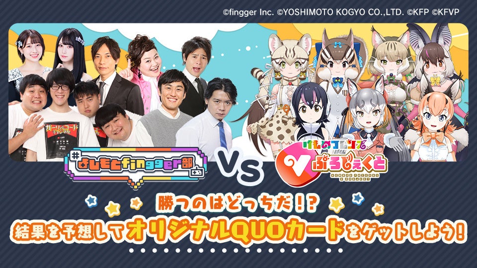 - オリジナルQUOカードが当たるチャンス!「よしもとfingger部」 VS 「けものフレンズVぷろじぇくと」 コラボレーションイベント 勝利予想キャンペーン
