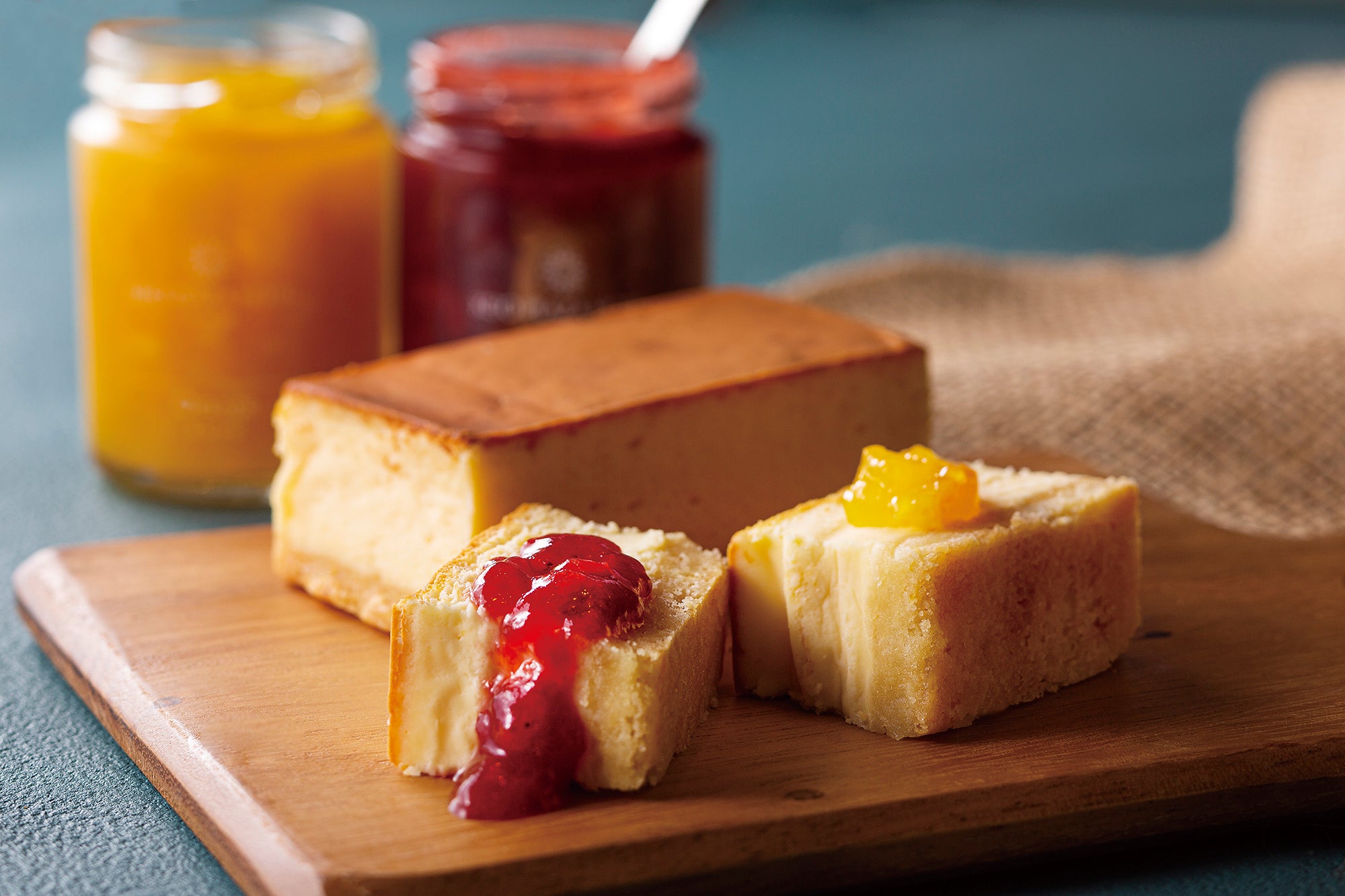 果汁感はそのままに、果実を残した素材感たっぷりの「ストロベリージャム」、爽やかな酸味とさっぱりとした甘味の「オレンジジャム」、コク深い風味とつぶつぶの果肉感が楽しめる「ブルーベリージャム」の3種類のうち、2種類が入ったセットをご用意いたします。トーストしたパンにたっぷりのせて、ヨーグルトにかけて、スイーツのソースとしてなど、お好みの食べ方を楽しんでいただきたい逸品です。