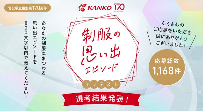 菅公学生服株式会社 (本社:岡山市北区駅元町、代表取締役社長:尾﨑 茂 以下:カンコー学生服)は、『菅公学生服創業170周年記念 制服の思い出エピソードコンテスト』を実施し、応募総数1,168点の中から入賞作品10点を決定しました。作品の全文を、特設サイトに掲載しています。