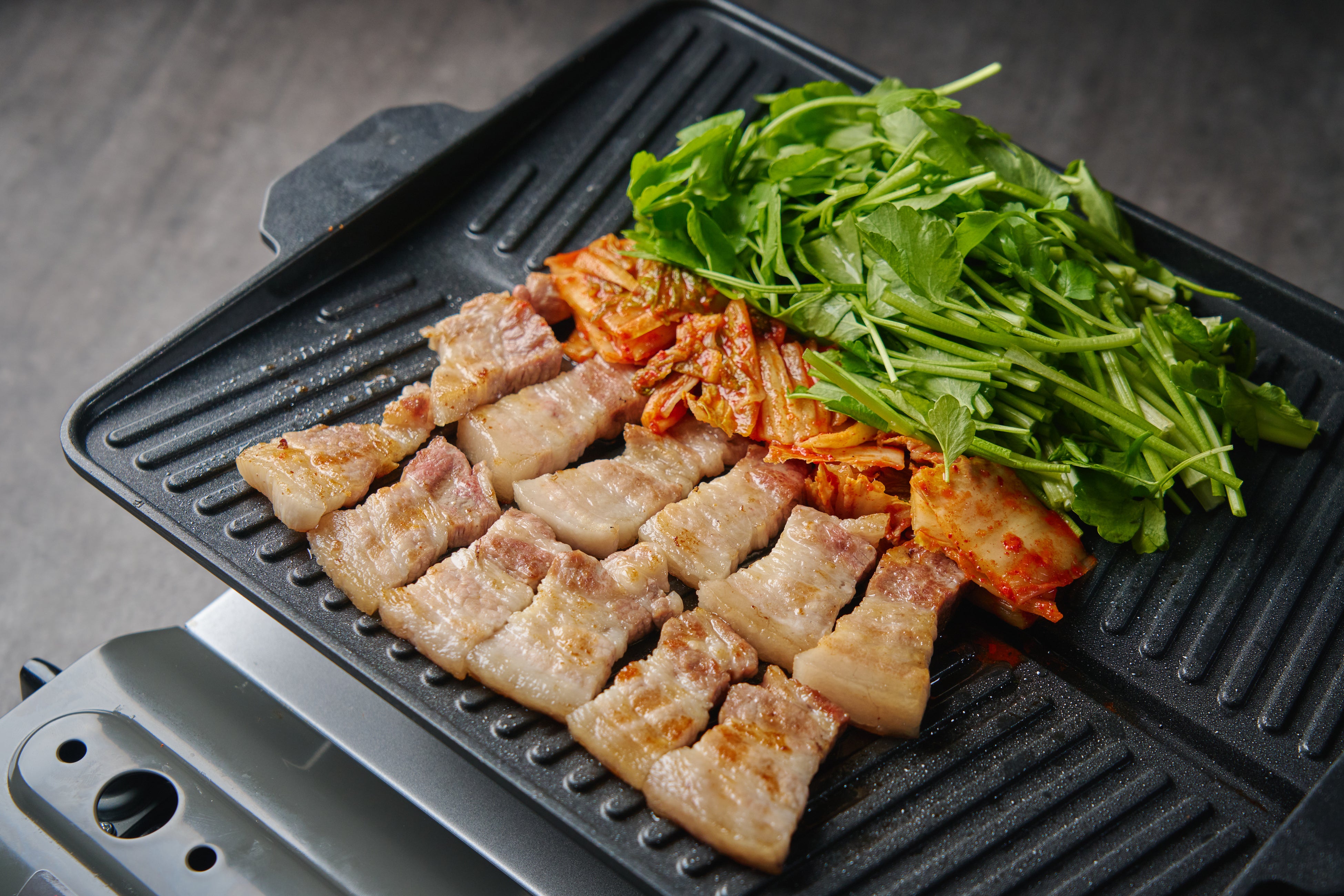 看板料理は、老舗焼肉店の技術を詰め込んで熟成した肉厚の豚肉をサンチュと一緒に食べる「サムギョプサル」や、さらに香り高い芹と一緒に焼き上げる「芹サムギョプサル」、鶏を丸ごと1羽煮込んで作るコラーゲンたっぷりの鍋料理「タッカンマリ」です。