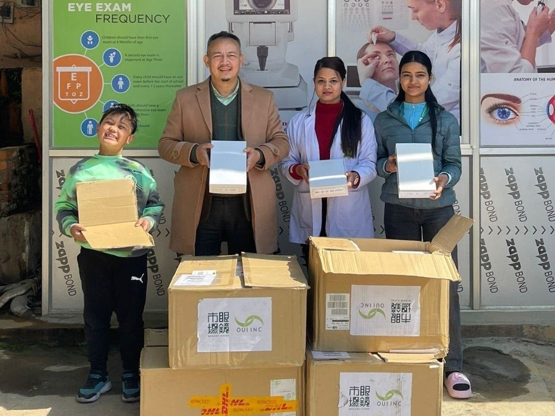 眼鏡市場は、慶應義塾大学医学部発のベンチャー企業 OUI Inc.(ウイインク:株式会社OUI)と共同で、ネパールを拠点に活動するBM Foundation(ビーエム・ファウンデーション)へ1,068本のメガネフレームを寄贈しました。