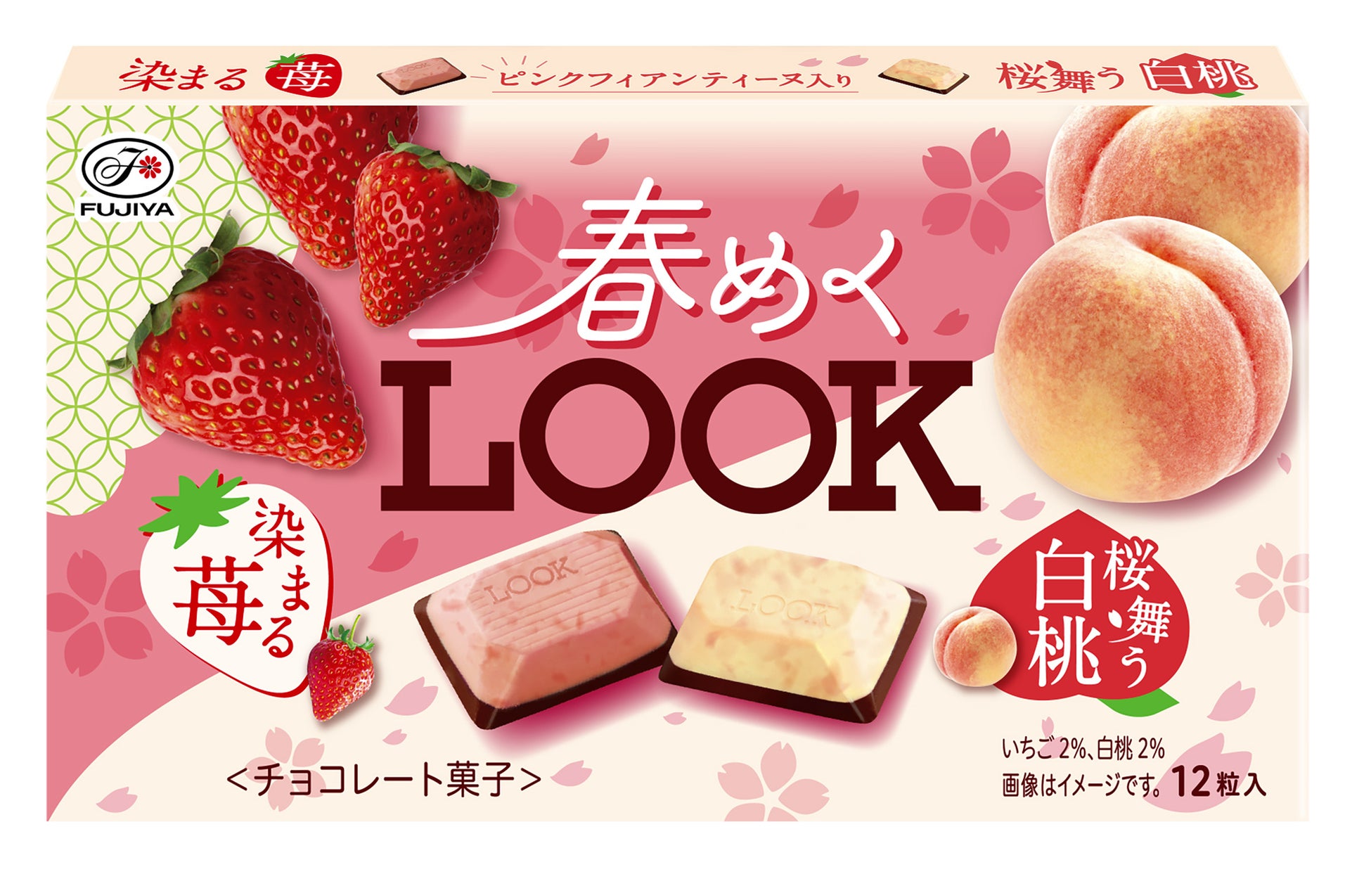 不二家のロングセラーブランド「ルック」より、春を先取りできて気分が上がる新商品が登場します。甘酸っぱい苺と豊かな甘みの白桃をアソートした、見た目も華やかな期間限定商品です。