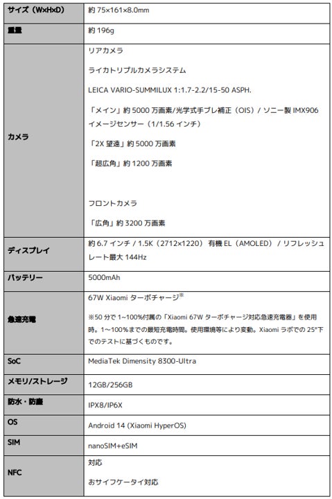 小米技術日本株式会社(以下「シャオミ・ジャパン」、本社:東京都港区、取締役社長:大沼 彰)は、ライカと共同開発したトリプルカメラシステムを搭載したハイエンドモデル「Xiaomi 14T」を12月12日(木)より発売します。