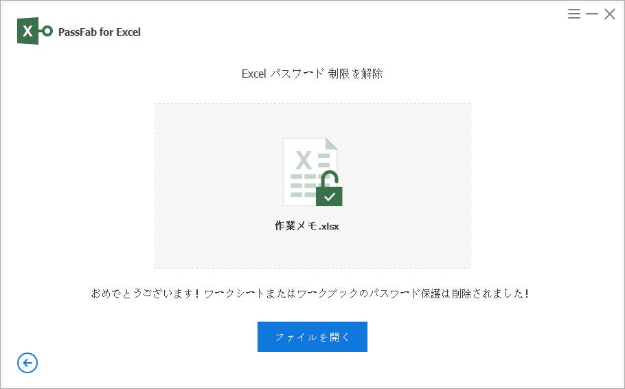 Step4:シート保護のパスワードが解除されますので、「ファイルを開く」をクリックしてExcelファイルを確認しましょう。