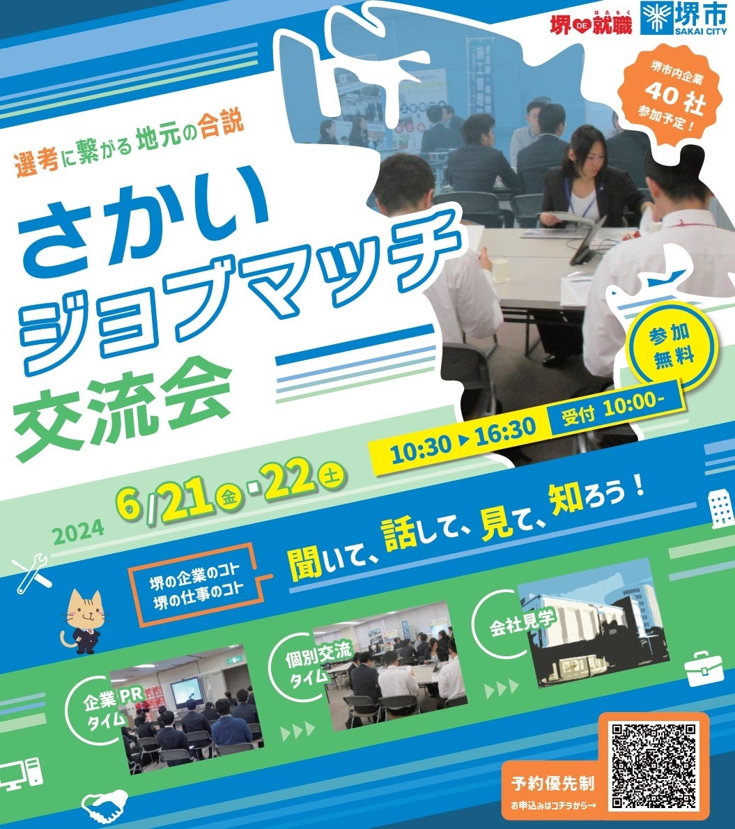 堺の企業40社と“直接”出会える 合同企業説明会「さかいジョブマッチ交流会」を開催します!(6/21(金)・22(土)開催 参加無料)