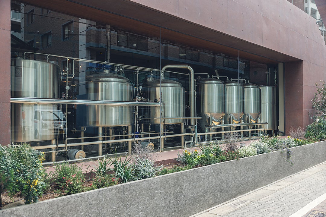ガラス張りのブルワリー内に設置されたタンクで醸造されたクラフトビールは、系列店の「kubelto」「五ッ釜ALLEY RESTAURANTS」にて提供しています。