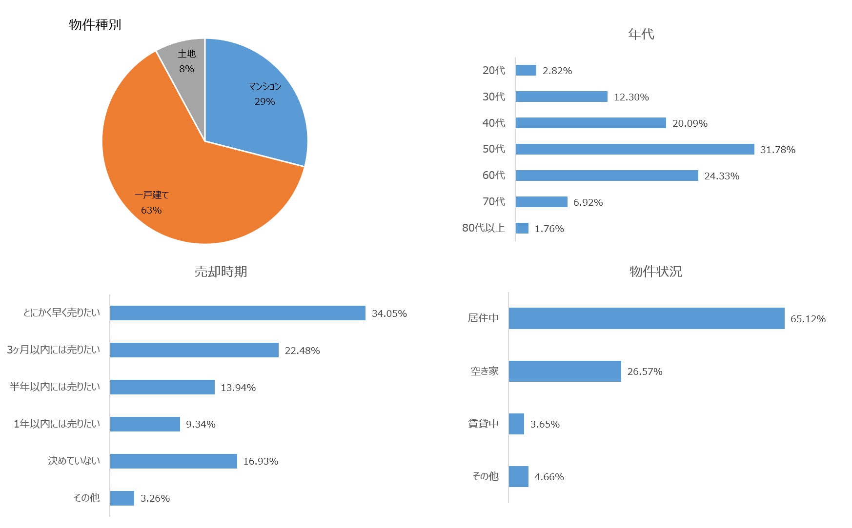登録者のアンケート結果によると『買取サービス』をご利用のお客様の約3割が空き家の買取を希望されており、また半数以上が3ヶ月以内の早期売却を希望されています。
