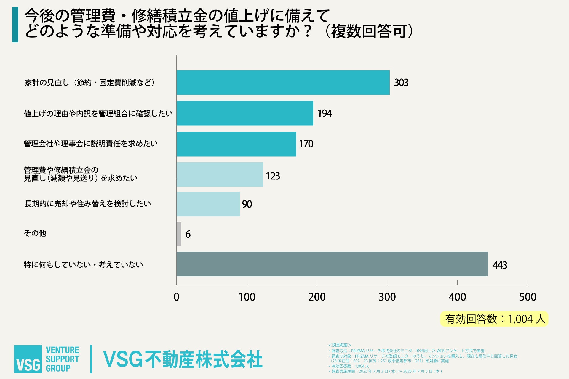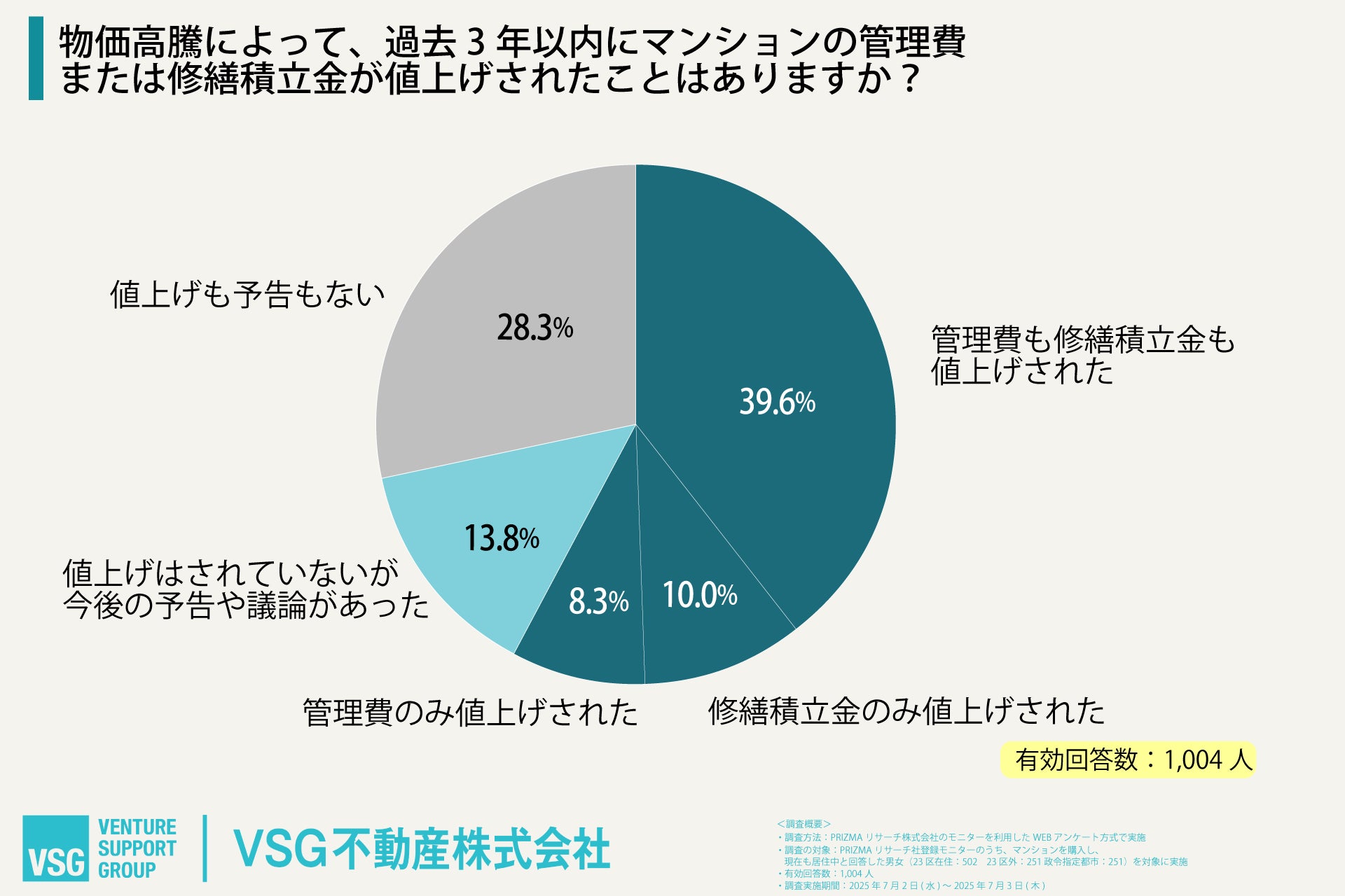 VSG不動産株式会社(所在地:東京都渋谷区、代表取締役:内田和希)は、「マンションの管理費と修繕積立金の値上げ」に関する意識調査を実施しましたので、お知らせいたします。
