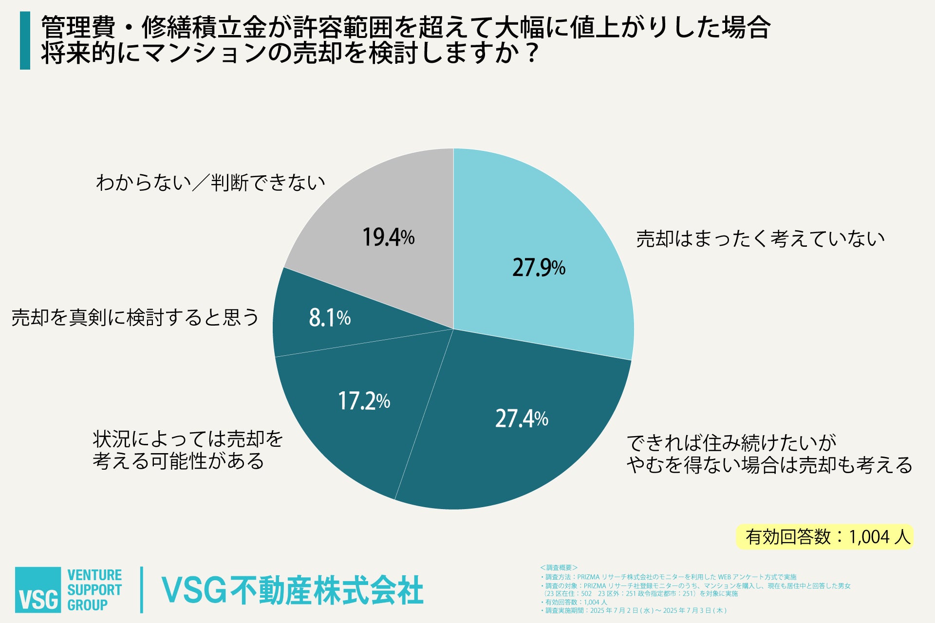 一方、「売却はまったく考えていない」も27.9%存在し、「わからない/判断できない」が19.4%と、態度を保留している層も少なくない。