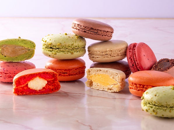 表面はさっくり、中はしっとりとした食感の、色鮮やかで香り高いマカロンに新作のオレンジフロマージュとピスタチオが加わりました。