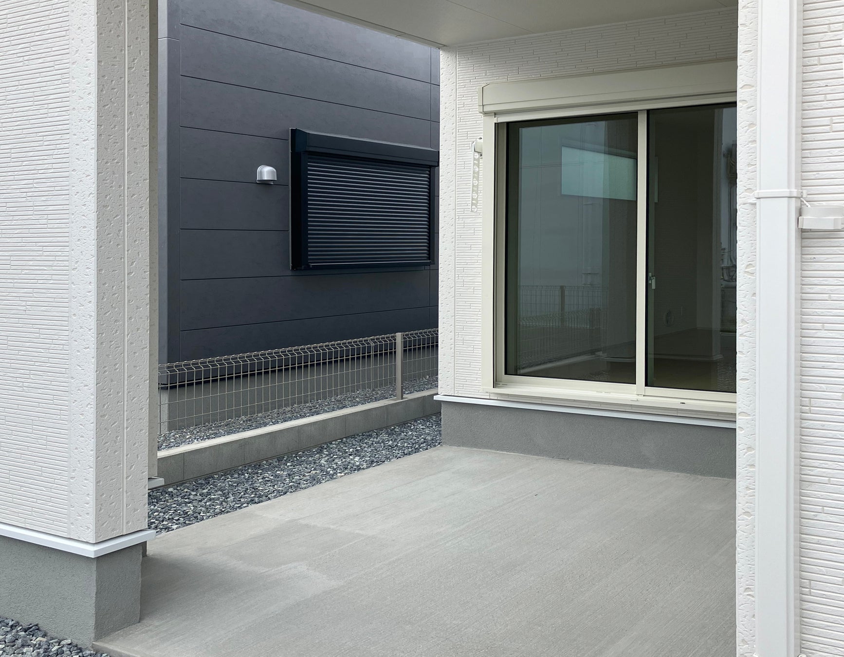 外壁は張出た袖壁による凹凸感と、サイディングの張分けにより高級感を演出。企画プラン全てにダイニングと繋がる屋根付きのテラスを設けており、アウトドアなどの趣味を楽しめるほか、急な雨でも洗濯物が濡れにくいなど、プラスアルファの“ゆとり”を実感していただける商品となっております。