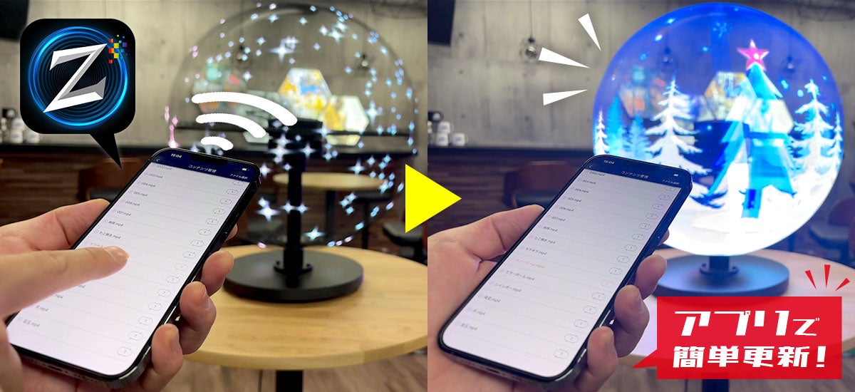 【新製品】3Dホログラムディスプレイ「ZANZO」に球体モデルが登場!縦軸回転の4本ブレードにより360度どこからでも見える映像表現を実現