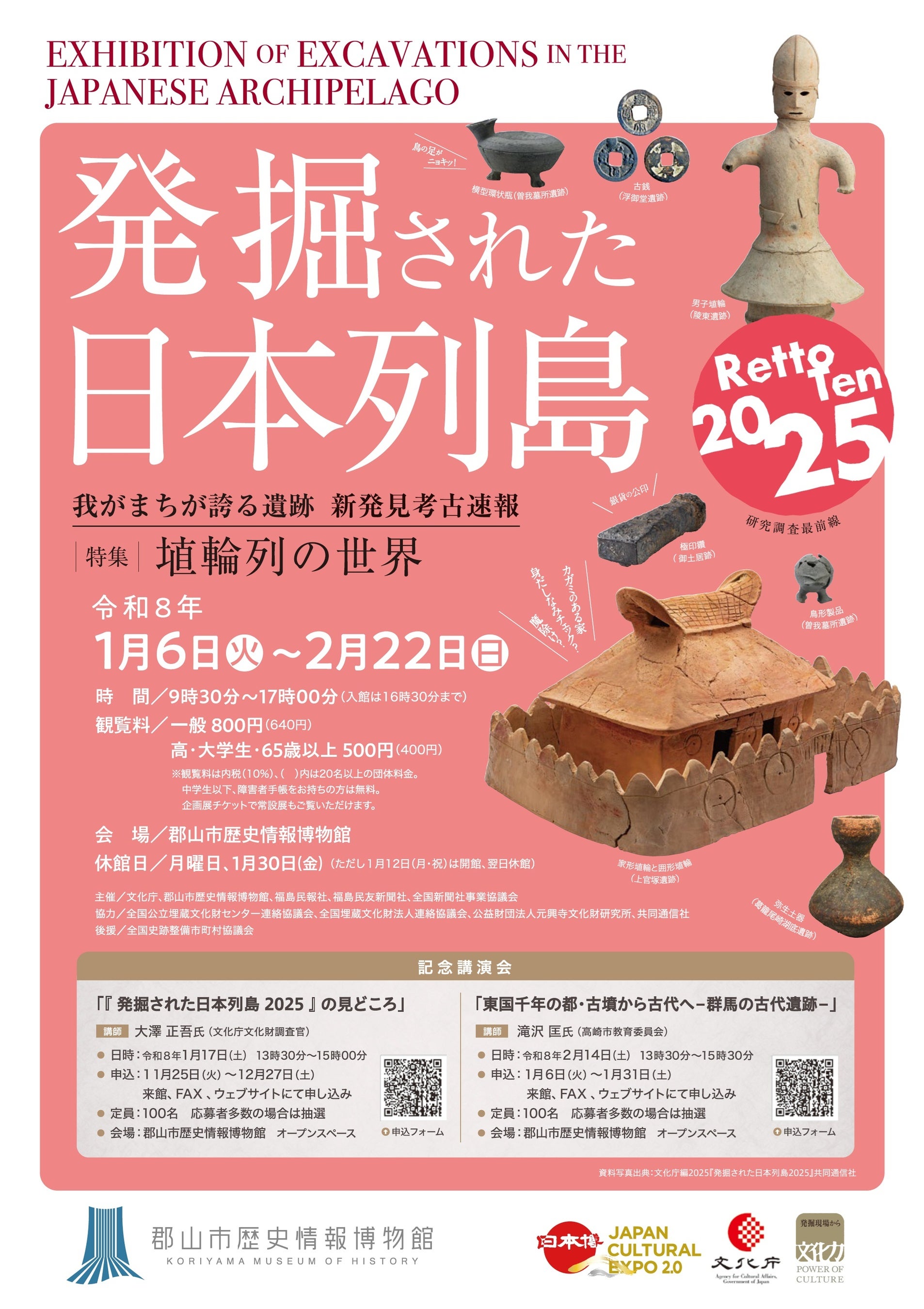 郡山市歴史情報博物館の4回目となる企画展は、特別企画展として文化庁主催「発掘された日本列島2025」を開催。日本各地を巡回してきた今年度の列島展は郡山の地でフィナーレを迎えます。