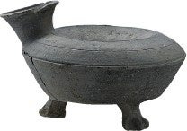 新潟県の曽我墓所遺跡は、8世紀後半から9世紀初頭を最盛期とする奈良・平安時代の遺跡で、鳥形の脚が付いた特殊な器形の須恵器が出土しています。現存する横型環状瓶は6点で、鳥足を模した3本脚が付くのは1点のみという珍しいものです。