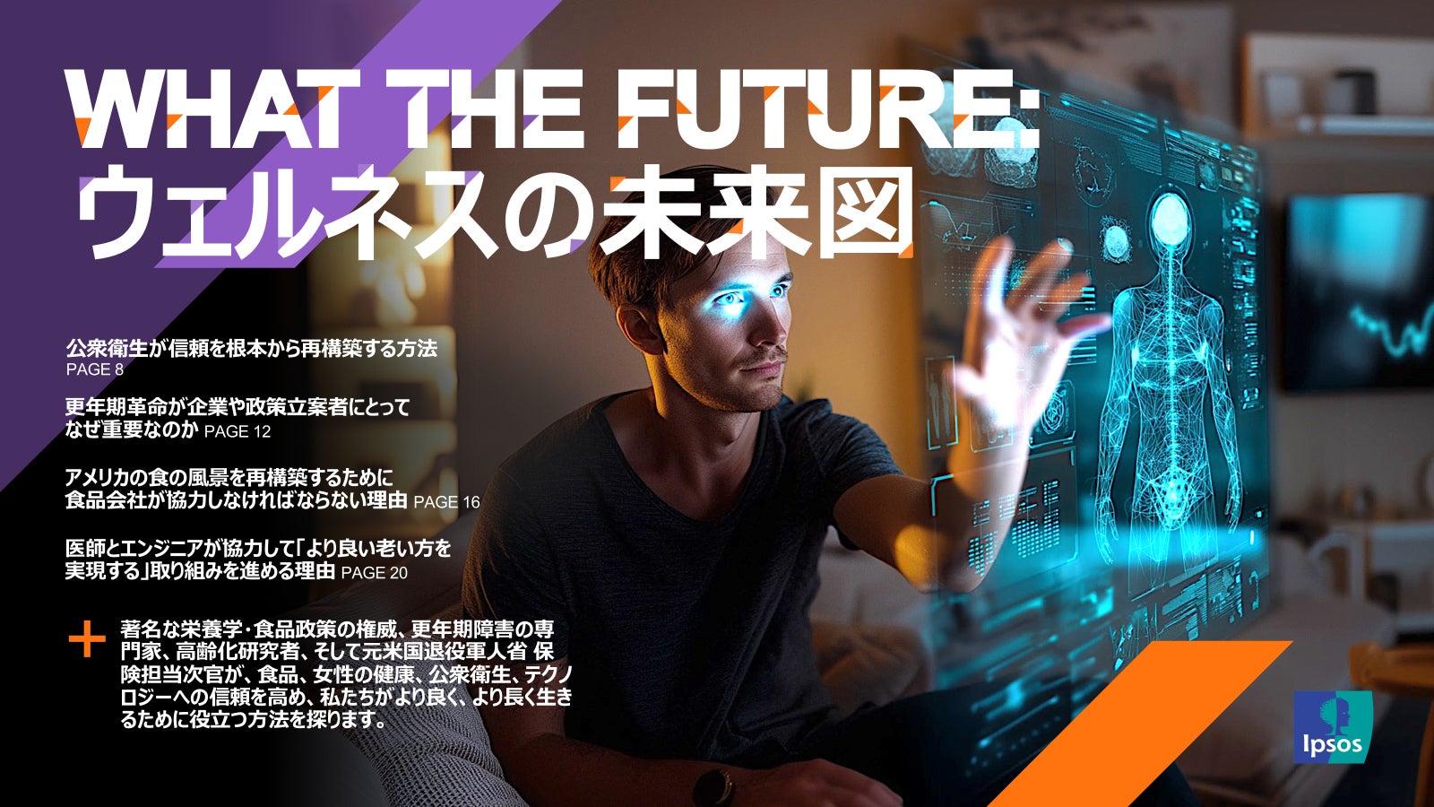 世界最大規模の世論調査会社イプソス株式会社(日本オフィス所在地:東京都港区、代表取締役:内田俊一)は、将来の社会変化をテーマにしたアメリカ発のシリーズ「What the Future」の最新号「ウェルネス2025」を公開しました。本レポートでは、信頼性、女性の健康、高齢、AI医療、食と公衆衛生など世界の健康を取り巻く主要トピックを多角的に分析しています。