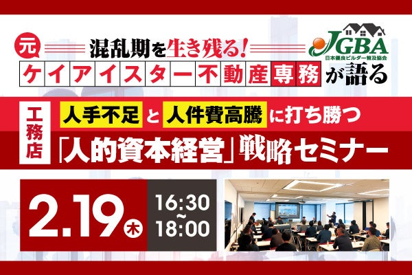 2026年2月19日(木)『工務店人手不足と人件費高騰に打ち勝つ「人的資本経営」戦略セミナー』開催決定!