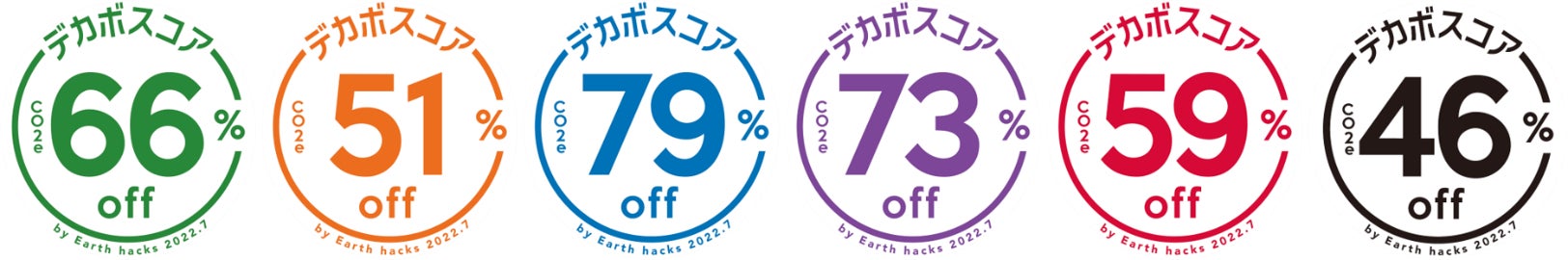 Earth hacksが提供する、商品やサービスにおけるCO2排出量*の削減率をスコア化した指標です。従来の素材や手法を用いた商品等と比較し、環境に配慮した工夫によって変化するCO2排出量の削減率を表示し、商品やサービスの環境貢献度をひとめで、わかりやすく伝えます。2022年7月に提供を開始し、2026年2月時点で導入企業は300社以上、1,500以上の商品・サービスに導入されています。
