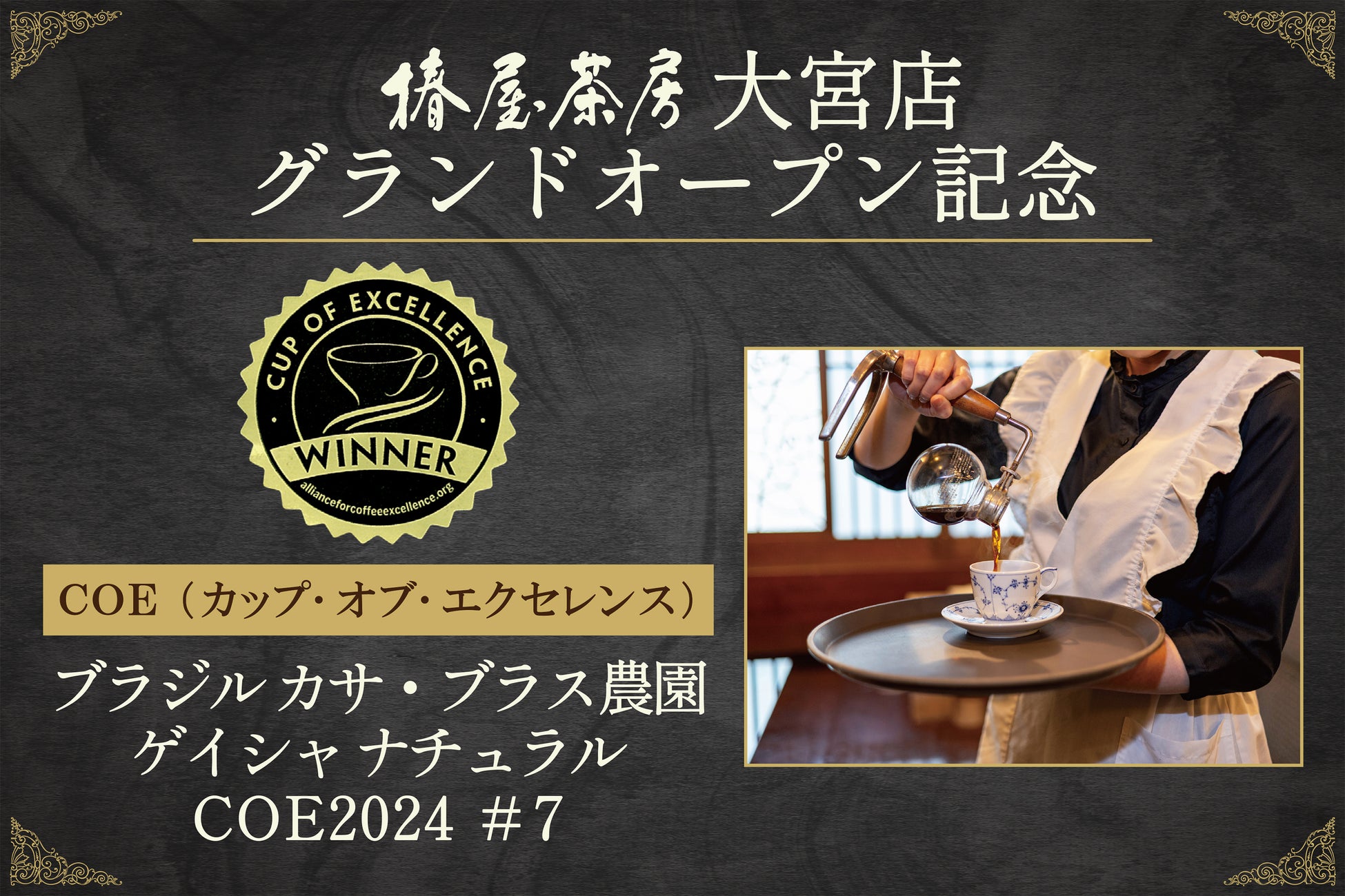 この度の大宮店のグランドオープンでは、国際的なコーヒーの品評会で最高品質のコーヒーにのみ与えられる栄誉ある称号、COE(カップ・オブ・エクセレンス)において、ブラジルのドライ部門で上位入賞を果たした貴重なロットをオークションで落札。従来のブラジルコーヒーとは一線を画す、フローラルで華やかな印象を感じるコーヒーを特別にご提供いたします。