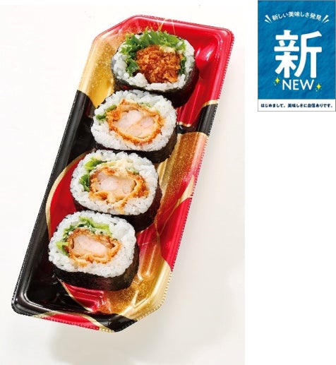 ぷりぷりの海老をふんだんに使用し、薄衣のカツに仕上げました。酢飯、海老カツ、タルタルソースの味わいをバランスよくお楽しみいただける巻き寿司です。