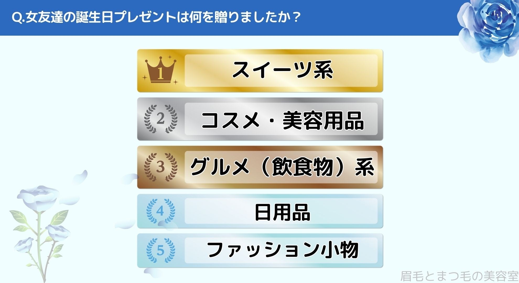 女友達の誕生日プレゼント何を贈った?|眉毛・まつ毛メディアの運営がアンケート