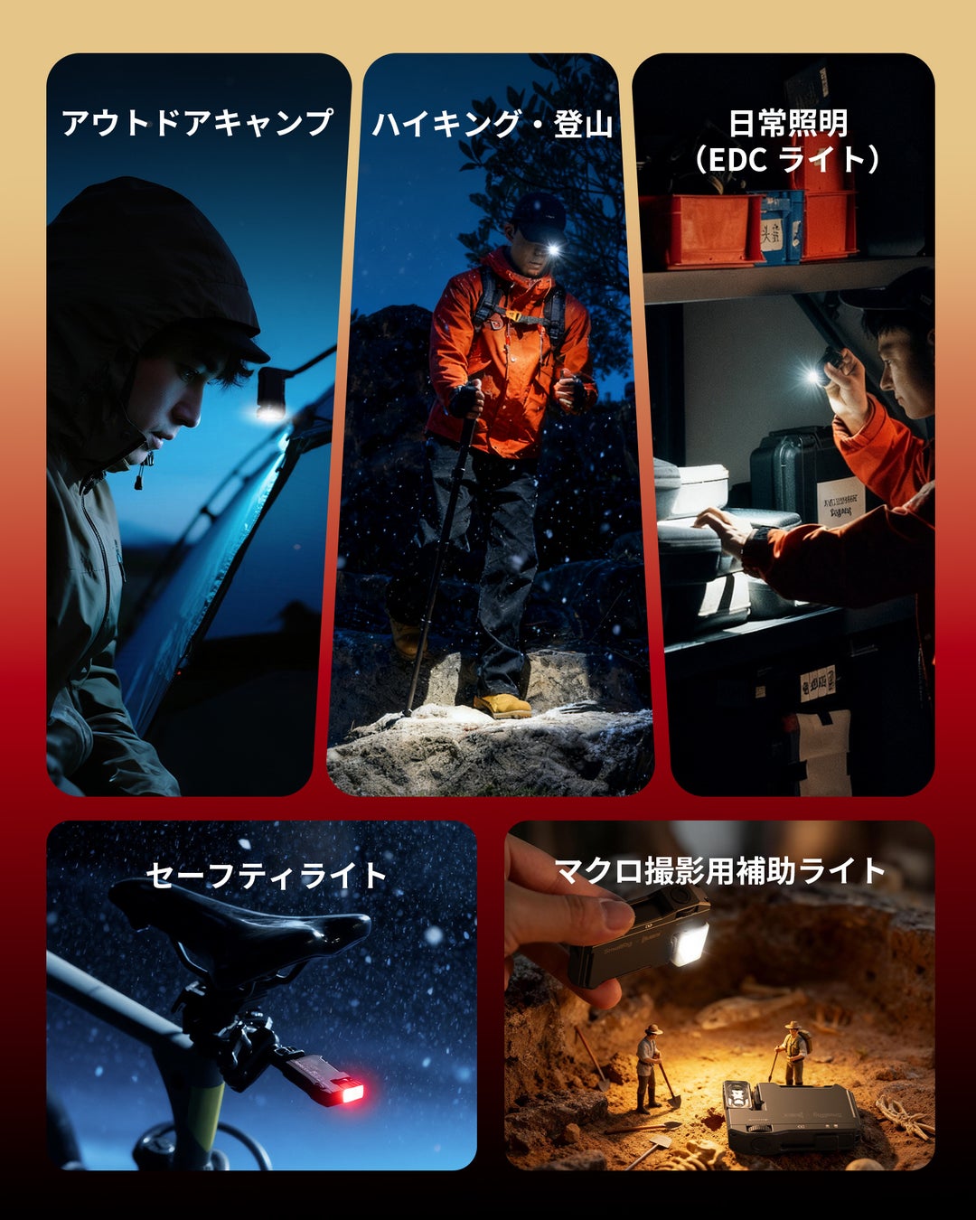 コンパクトながらパワフル。アウトドア・日常・撮影まで幅広く活躍する多機能ライト