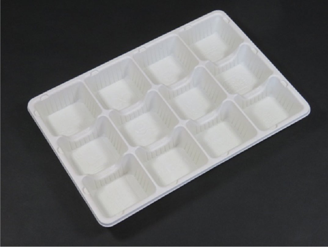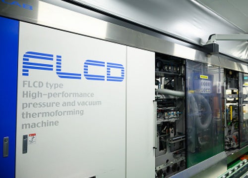 また同社は、「浅野研究所」製の連続真空圧空成形自動トリミング機やILLIG社製の小型連続真空成形自動トリミング機を始めとする多彩な真空成形機を導入し、高圧での成形を実現しています。この革新的な真空圧空成形技術により、金型への密着性が向上し、シャープな仕上がりと高い生産効率を両立しています。また従来の成形方法と比較してCO2排出量の大幅な削減も達成しています。