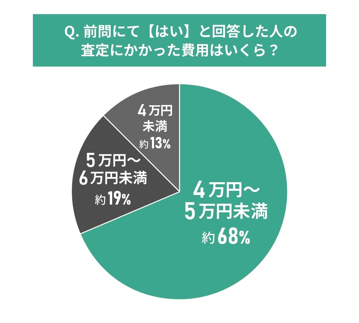 4万円〜5万円未満が69%と最多です。大半の人が5万円前後で査定を依頼しています。この価格帯は、中古マンション購入の総費用から見れば比較的少額です。しかし、必須ではないサービスに追加費用をかけることへの抵抗感が、実施率の低さにつながっていると推測されます。