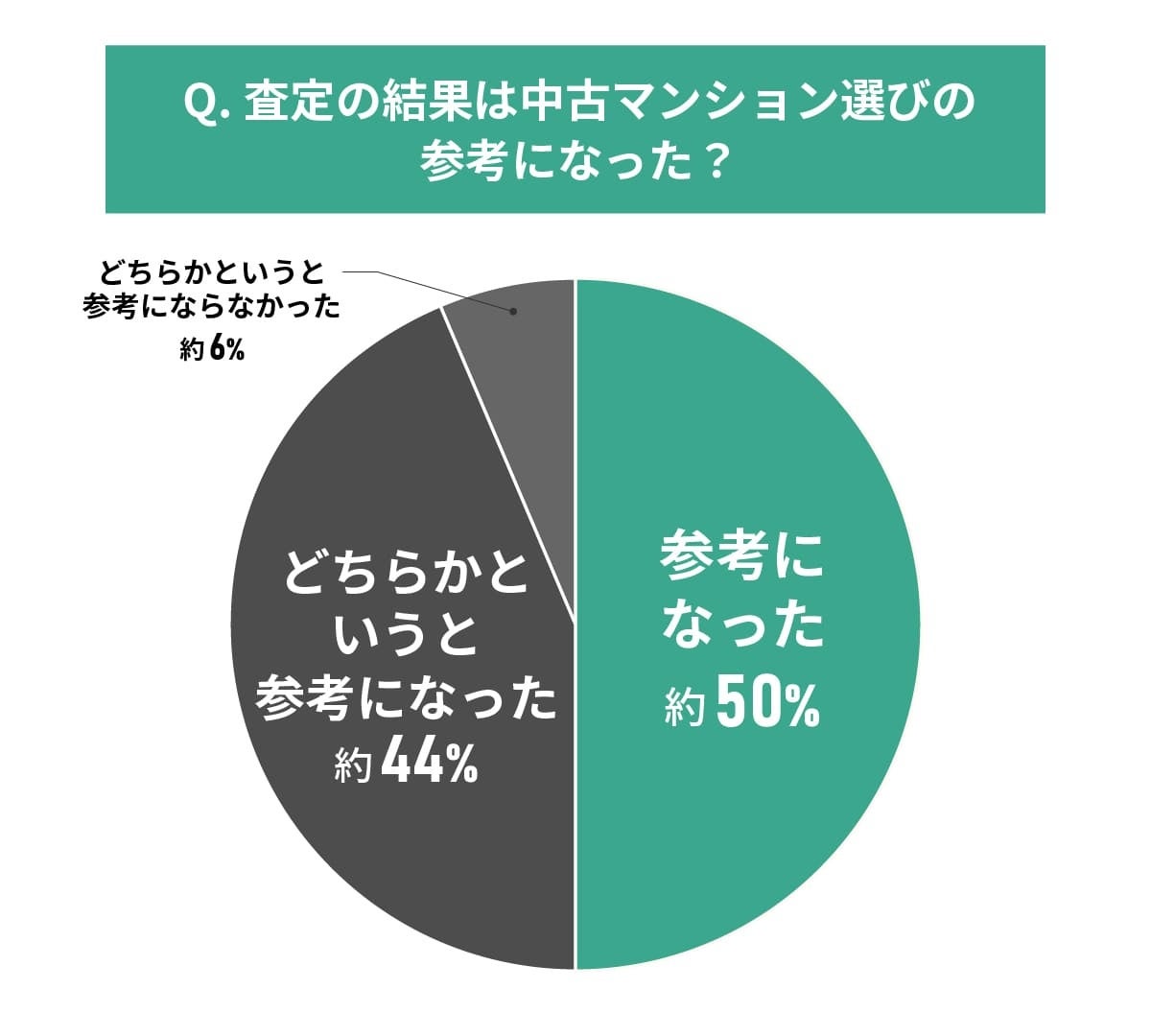 「参考になった」と「どちらかというと参考になった」を合わせると94%です。実施した人のほぼ全員が満足しています。査定を依頼した人の満足度が極めて高いことは注目すべき点です。費用をかけた価値があったと感じている人が大多数を占めています。