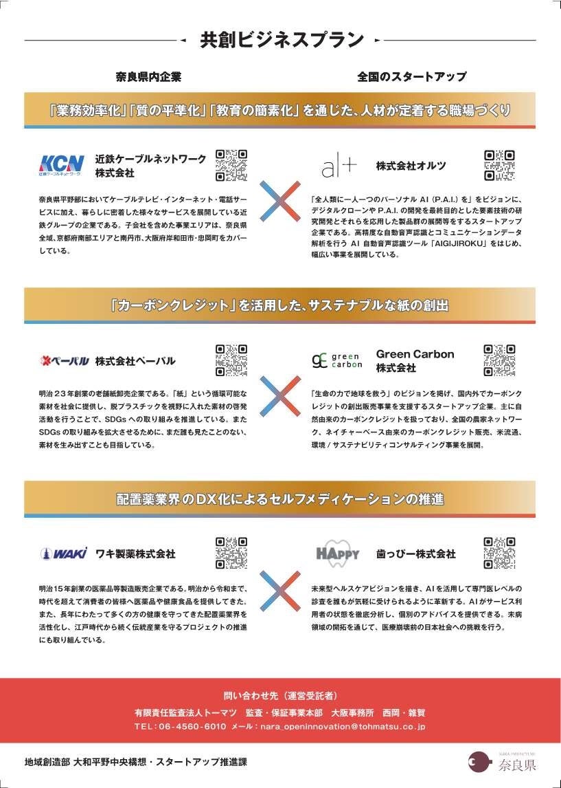 奈良県は、令和6年度に、県内企業が、革新的な技術やアイデアを持つ全国のスタートアップとの共創を通じて、新規事業創出を目指す「奈良県オープンイノベーションプログラム」を実施しました。