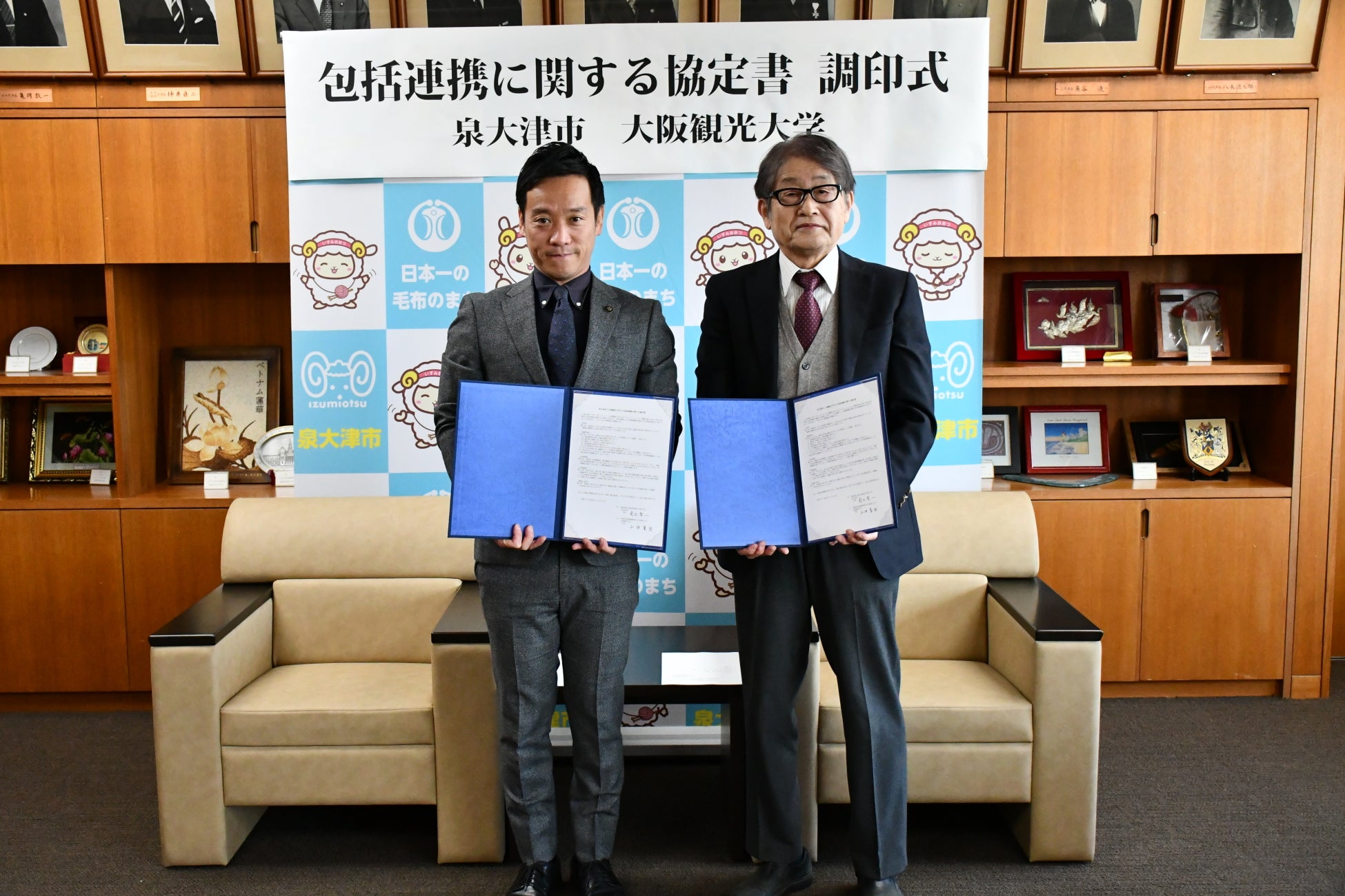 この度、大阪府泉大津市(市長:南出賢一)と大阪観光大学(学長:山田良治、所在地:大阪府泉南郡熊取町)は、国際交流の場の創出や、グローバルな視点をまちづくりに活かしながら、持続可能で豊かな地域への発展を目指し、以下の4分野における包括連携協定を締結しました。