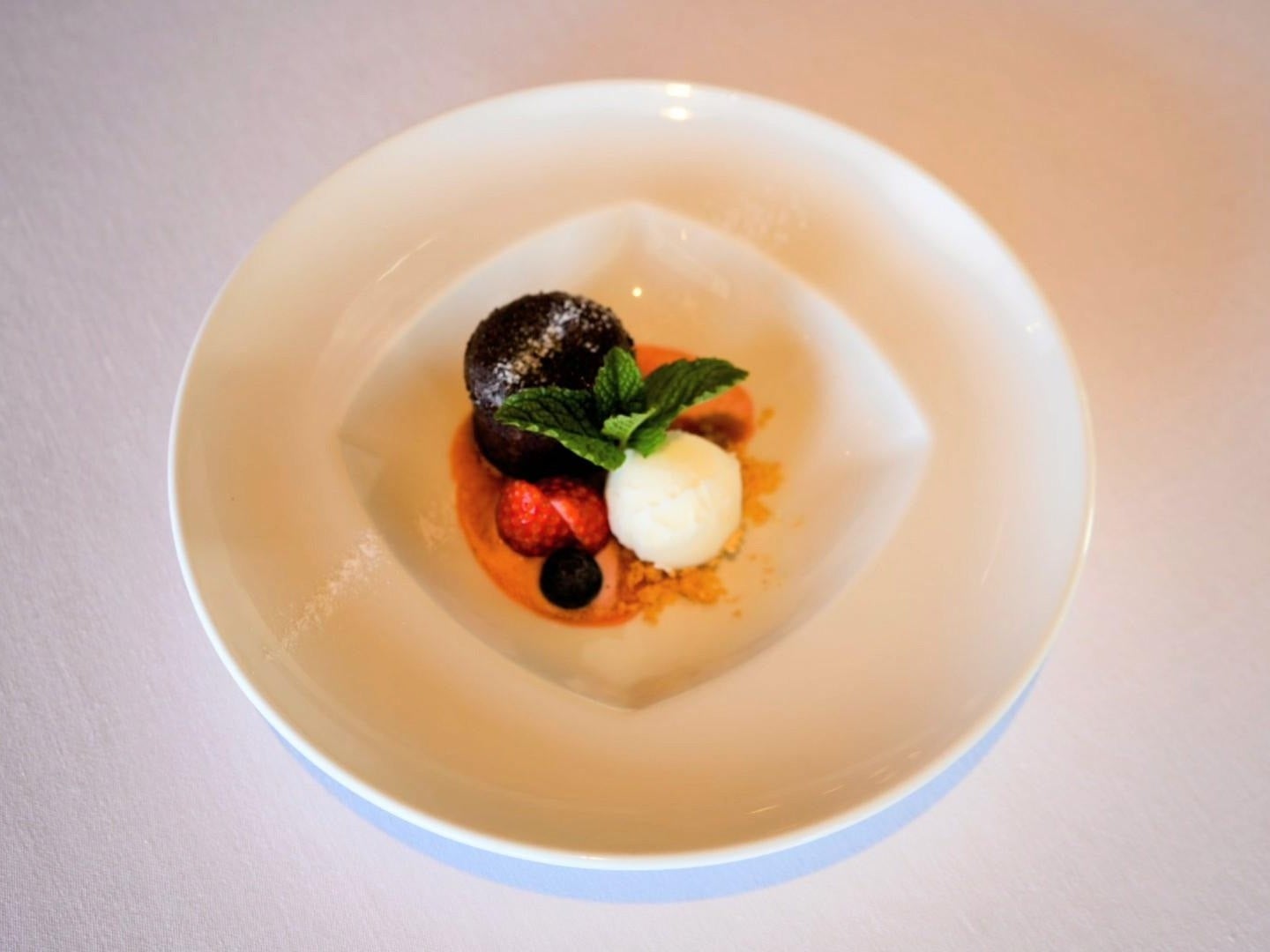 温かいフォンダン・ショコラにミルクジェラートを添えてご提供いたします。