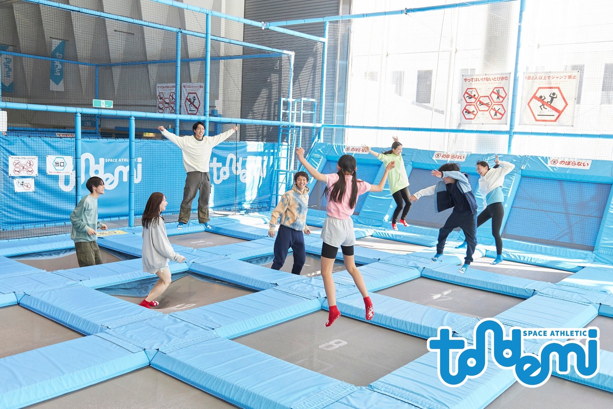 「トンデミ」は「トランポリン」「クライミングウォール」「ロープウォーク」など人気のアクティビティを取りそろえた本格的な屋内アスレチック施設で、現在国内で5店舗を展開中です。国内の屋内型アスレチック業態の第一人者として、積極的に世界中から新奇性のあるアクティビティを導入し、 “ここにしかない”新しい体験価値を提供しています。