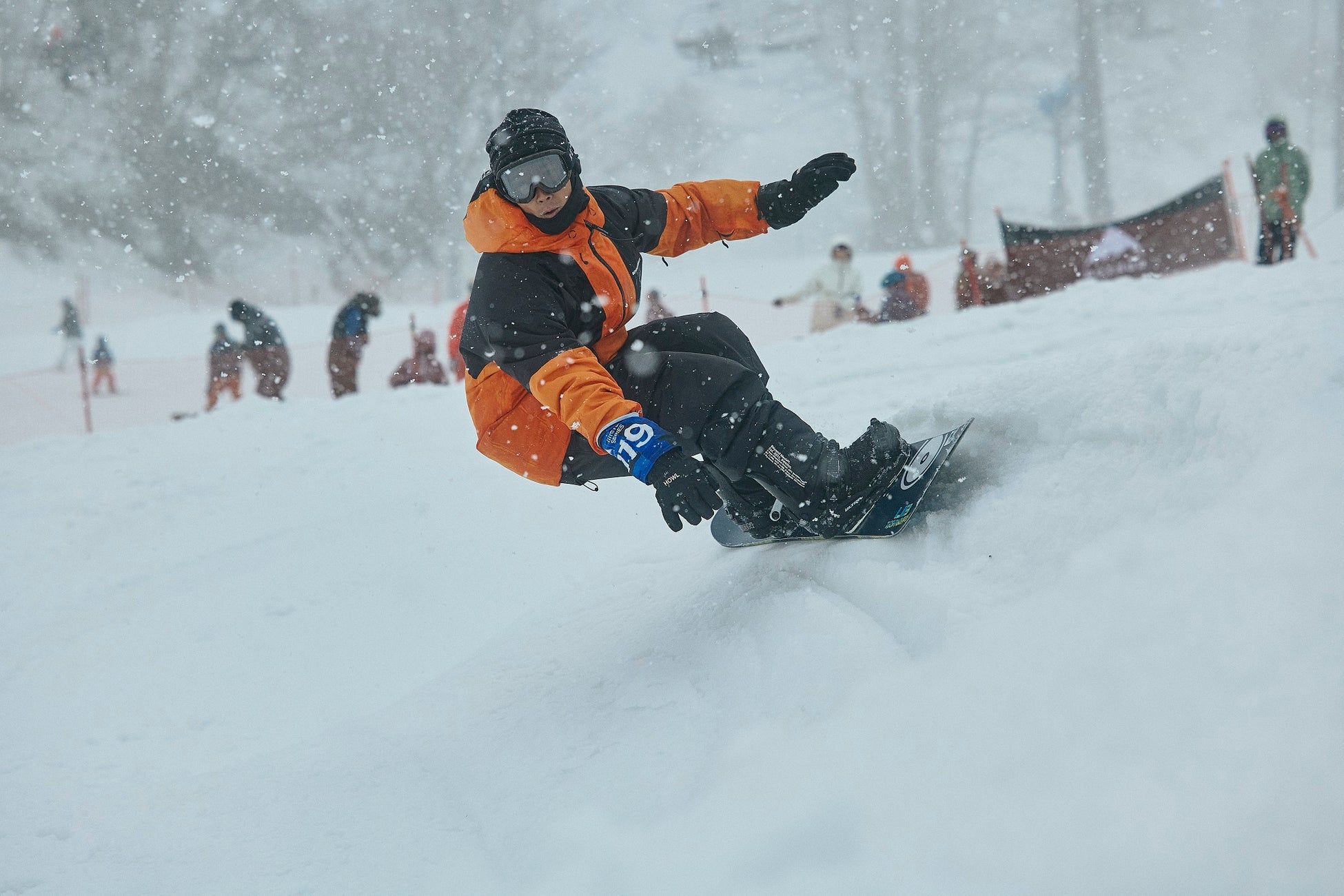 3月18日のイベント当日、春の雪が降りしきる白馬五竜の会場には、4歳から58歳まで幅広い年齢層のスノーボーダーが早朝から集まりました。バンクドスラロームとパークセッションに合計153名が参加。藤森由香、降旗由紀、中山悠也、宮澤悠太朗、竹内悠貴といったBurtonライダーも参加し、共にセッションを楽しみました。