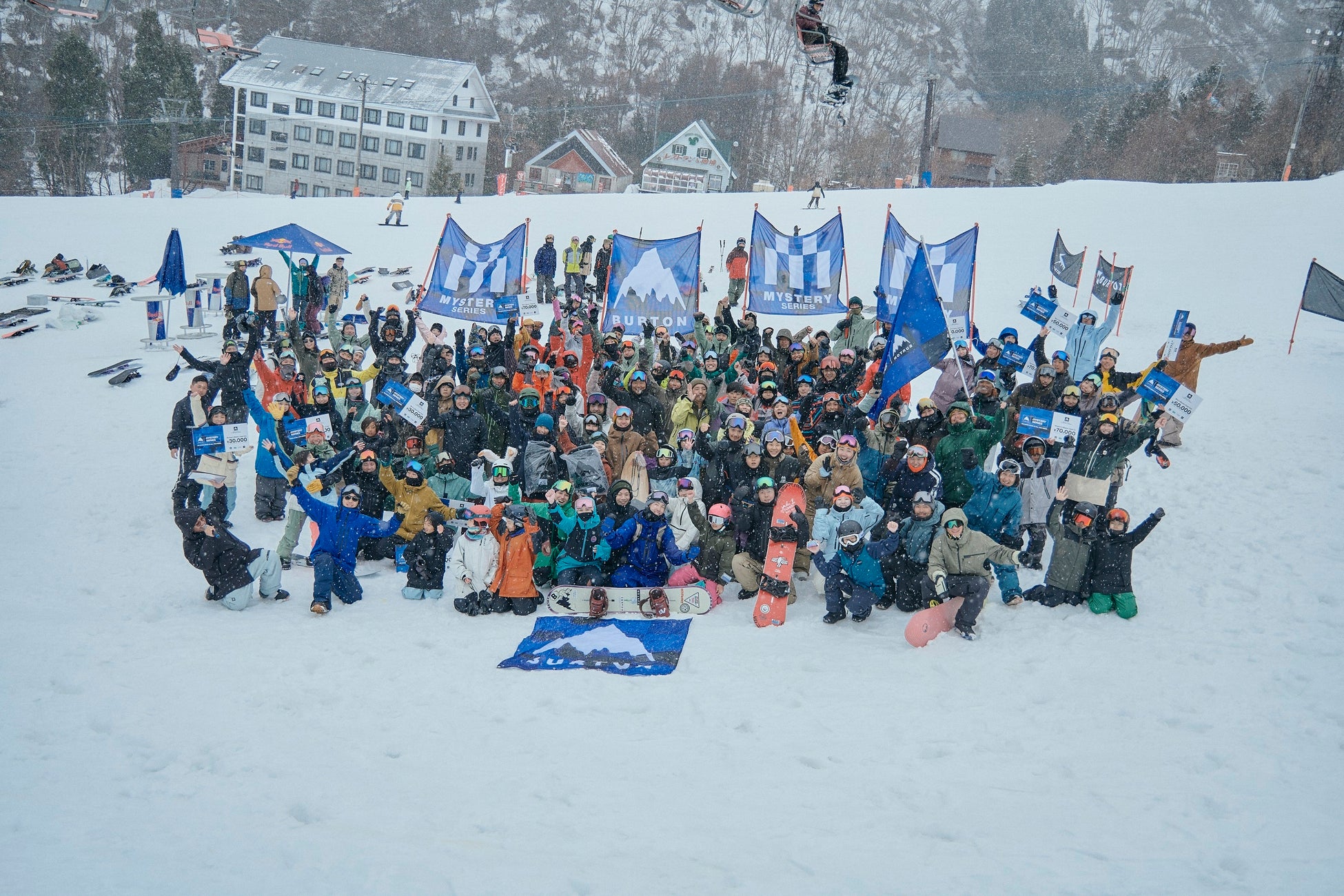 春雪が降りしきる中、合計153名が参加 あらゆるスノーボーダーがカルチャーを堪能できるグラスルーツスノーボードイベント Burton Mystery Series 3月18日(土)白馬五竜にて開催