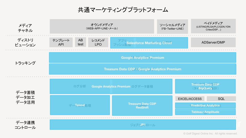 株式会社セールスフォース・ジャパン(本社:東京都千代田区、代表取締役会長兼社長:小出 伸一)、トレジャーデータ株式会社(本社:東京都千代田区、代表取締役社長:三浦 喬)、株式会社ディレクタス(本社:東京都品川区、代表取締役:岡本泰治)、株式会社NTTドコモのマーケティング分野における新規事業型子会社である株式会社DearOne(本社:東京都港区、代表取締役:河野恭久、以下:DearOne)の4社は共同で、株式会社ゴルフダイジェスト・オンライン(本社:東京都品川区、代表取締役社長:石坂信也、以下「ゴルフダイジェスト・オンライン」)が運営するゴルフ専門ポータルサイト「GDO」にて上質な顧客体験を実現するために、カスタマーデータプラットフォーム(CDP)、行動分析、マーケティングオートメーションが連携した次世代のマーケティングプラットフォームを構築しました。