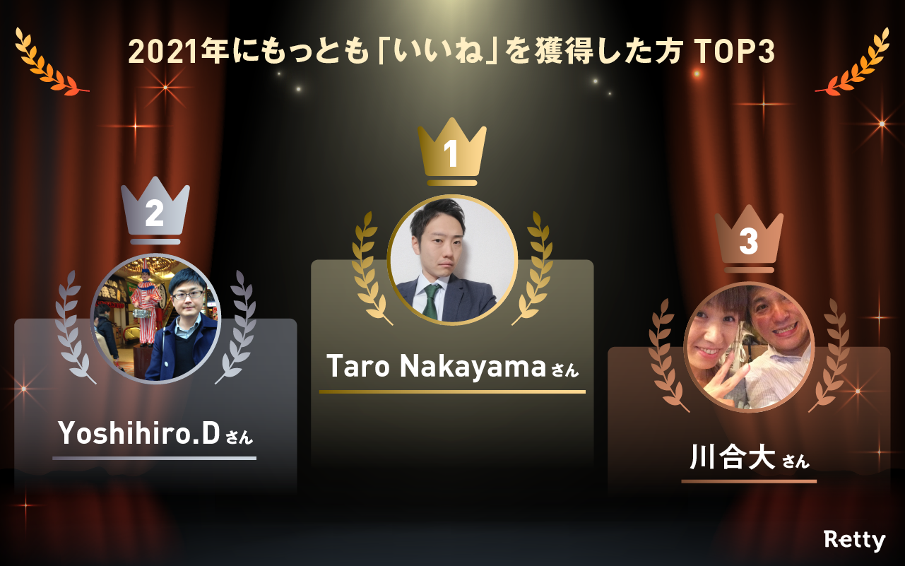 2021年、Rettyへの投稿にもっとも「いいね」を獲得した方は下記3名のユーザーさんです!(※1)