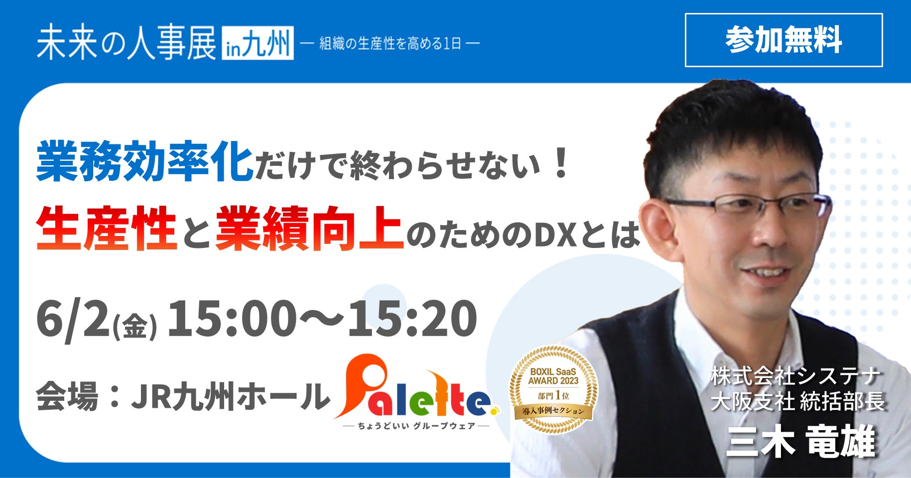 【6/2(金)15:00】生産性と業績向上のためのDXセミナー「未来の人事展in九州」にて開催!