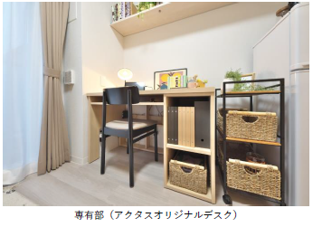 本物件では、使用する置き家具に株式会社アクタス(以下「アクタス」)が提供する再生原材料を用いたサステナブルな製品を採用し、使用後はリペア、リユース、リサイクルシステムを活用した家具を循環させるサーキュラーエコノミーに取り組んで まいります。また、どのような素材から生まれた家具であるのかをイメージしやすいように、原材料からの加工工程をキャプションで説明するなど、学生の環境意識を高める施策も行っております。