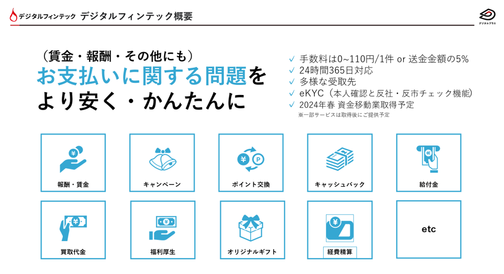 当社では、資金移動業を取得することにより、現在の提供領域に加え、報酬などの今まで対応できなかった対価性がある支払いと、犯罪収益移転防止法に準拠した送金に対応できるようになります。