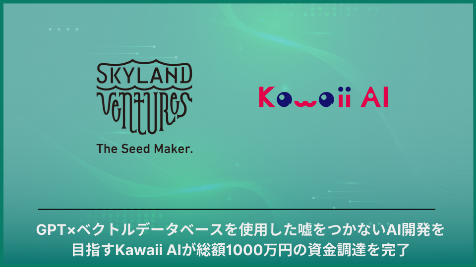 Skyland Ventures、GPT×ベクトルデータベースを使用した嘘をつかないAI開発を目指すKawaii AIのシードラウンドに参加