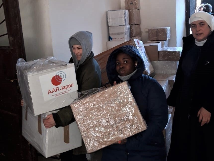 AARはポーランド・ウクライナ両国にネットワークを持つポーランドのカトリック教会の「汚れなき聖母マリアの修道女会」と連携し、当会に寄せられたご寄付で調達したり、教会関係者が提供したりした緊急支援物資を、陸路越境してウクライナ西部に輸送する国内避難民支援を実施しています。