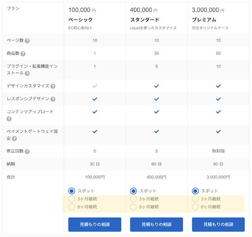 ※Shopifyサイト業務のプラン事例