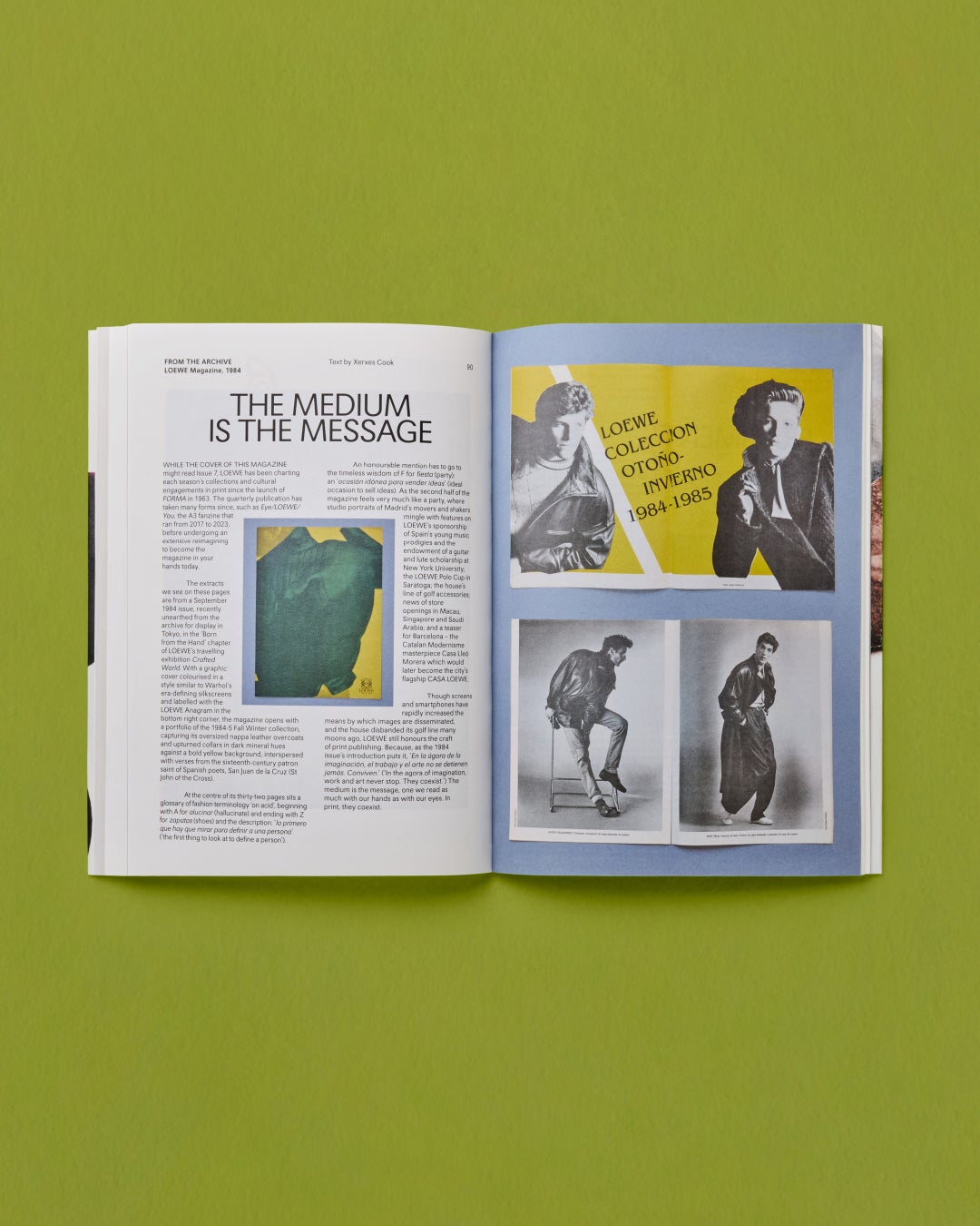 最新号のロエベ マガジンは、パズルバッグの10周年、およびそれに伴って過去のコレクションから復刻された19点のリエディションと、新作「コンフェッティ」デザインの登場を記念したポートフォリオから始まります。2015春夏メンズコレクションでクラッチバッグとして登場して以来、この折り紙に着想を得たバッグが、いかにしてロエベを象徴するアイコンであると同時に現代のクラシックとなったのかを探ったものです。過去10年間にわたるパズルバッグの進化の軌跡を辿るエッセイとともに、75枚ものレザーピースを手縫いで巧みに組み合わせたそのパッチワークのような幾何学的デザインが、多彩な表現のためのキャンバスと機能してきたことについて掘り下げており、「ポルカ」をはじめ、バズを生んだ「ピクセル」、そしてチャールズ・レニー・マッキントッシュ、ジョー・ブレイナードのアートや世界観をインターシャで表現したエディションにも言及しています。