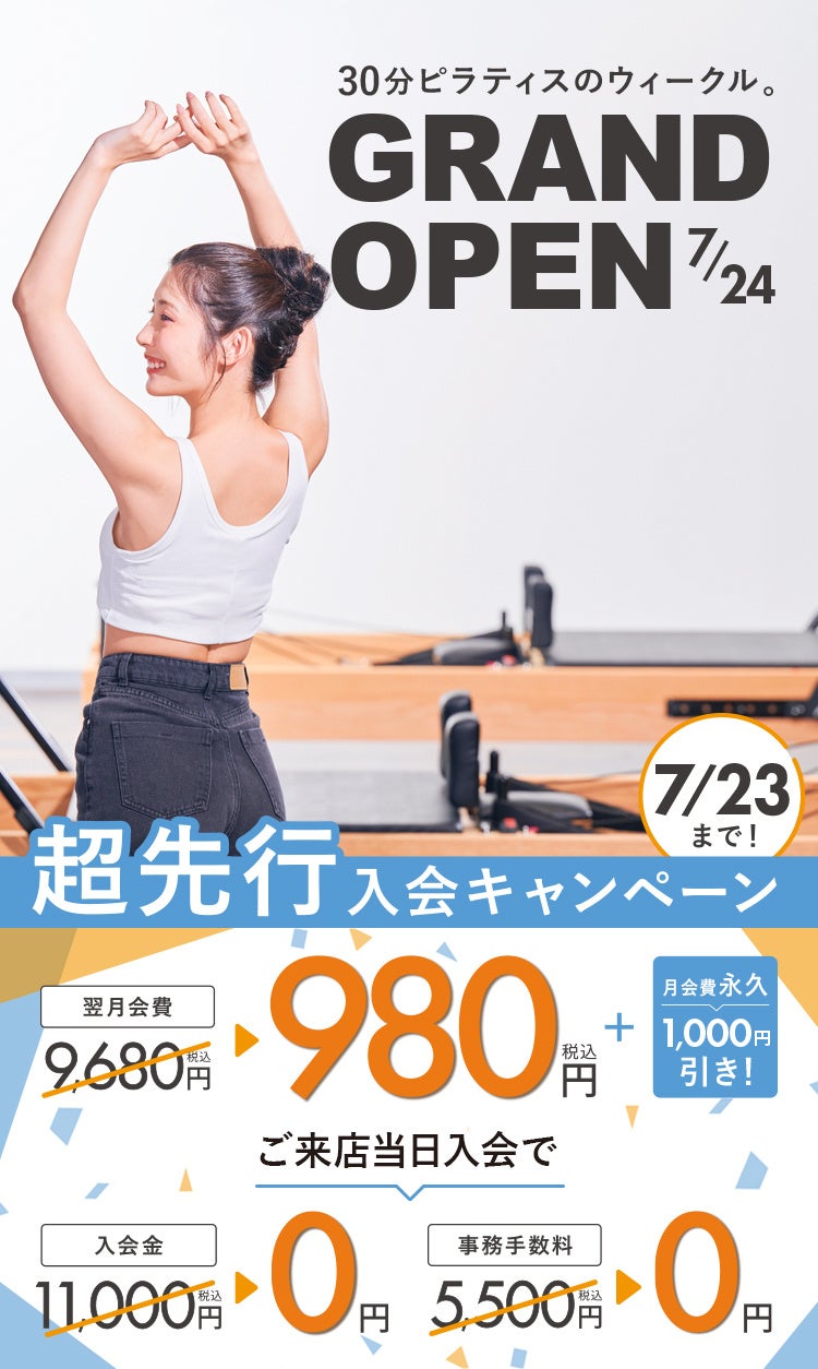 着替え不要・たった30分の手ぶらで通える、マシンピラティス専門店が大阪に初上陸!