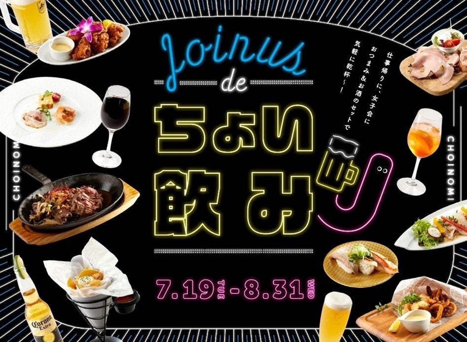 「アンドダブルレインボー」には、まぐろのポキサラダ、ジャワイアンポテトなど、対象のおつまみメニューの中から自由に選べる「ハワイアンビールセット」が登場!お好みの組み合わせでハワイ気分を味わうことができます。また、「日比谷松本楼」では、ボリュームたっぷりの「天然エビと真イカのフリット盛り合わせ アイオリソース添え」と対象のお酒セットが、通常価格より580円もおトクに楽しめる、「サマーセット」をご用意しております。お仕事帰りに、女子会に、至福の1杯をこだわりのおつまみと共にお楽しみください。 また、期間中には17時以降にお使いいただけるグルメクーポン付きの「ジョイナスdeちょい飲み」チラシを配布いたします。本クーポンは、ジョイナスのレストラン&カフェにて、1会計1,000円(税込)以上のご注文で、300円分の金券として使用可能で、さらにおトクにちょい飲みをお楽しみいただけます!