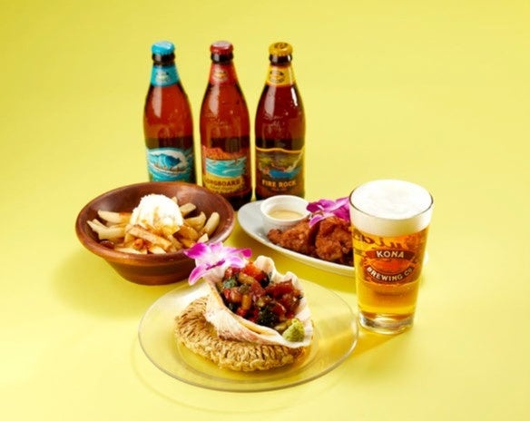 おつまみ6種の中から2品(まぐろのポキサラダ・ジャワイアンポテト・モチコチキン・スパムフライ・オニオンリング・枝豆)+ハワイアンビール3種の中から1本