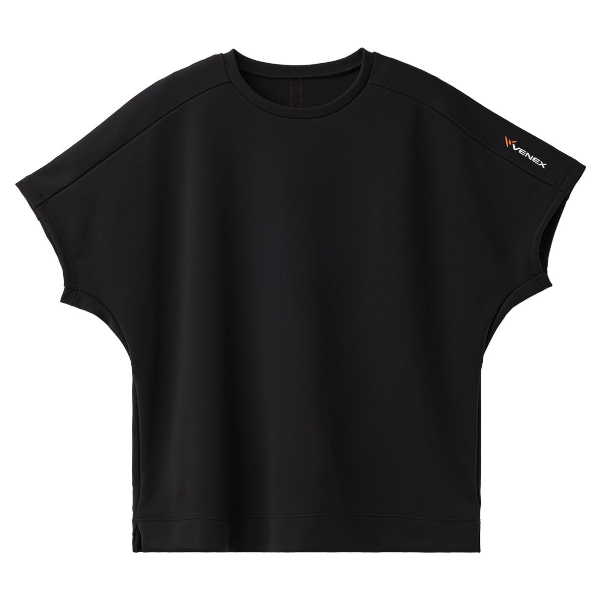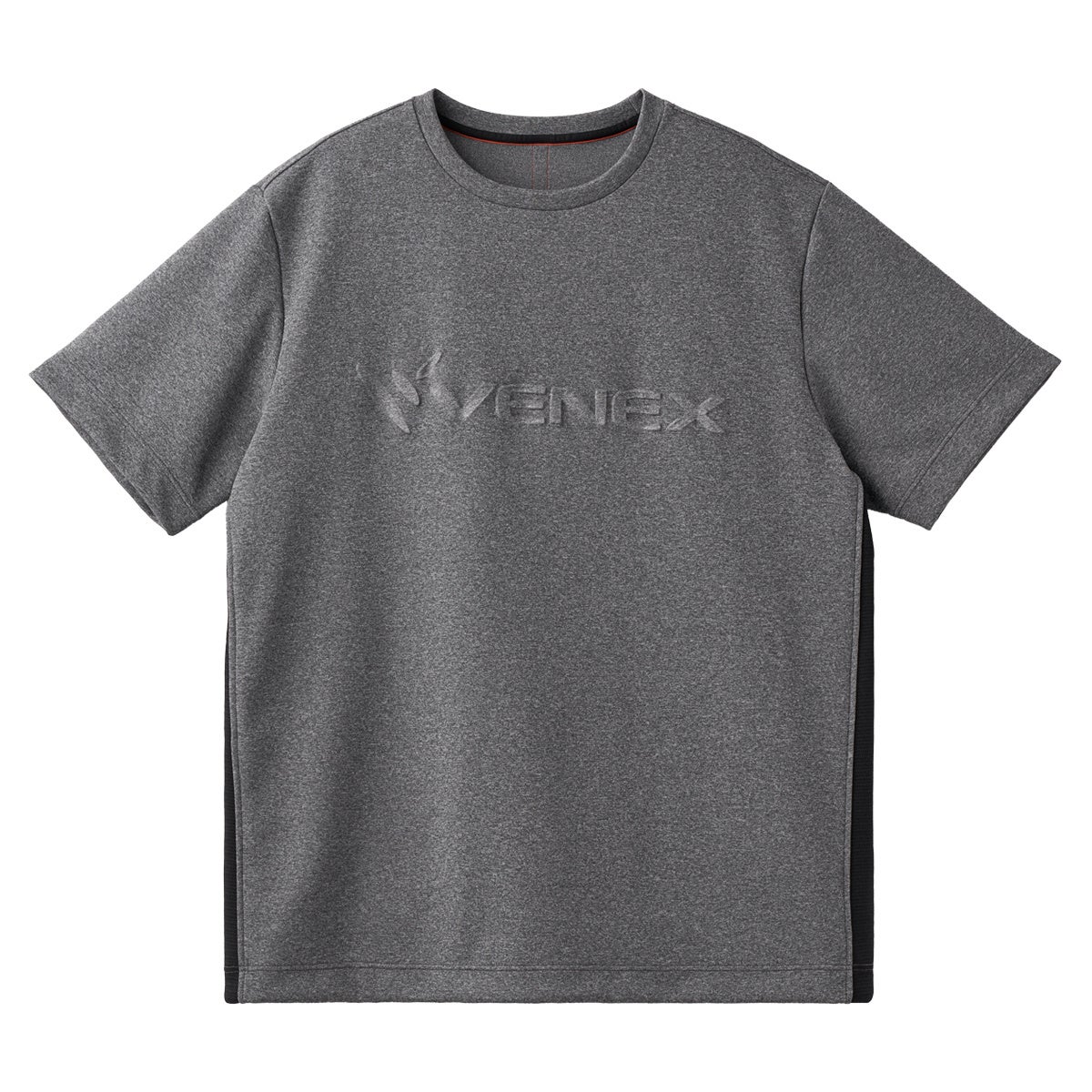 胸のVENEXロゴを肌当たりの気にならないエンボス加工で表現したTシャツ。脇にはメッシュテープを使用し、通気性もアップ。後ろ襟の内側には汗臭に対する消臭効果があるテープを施しています。