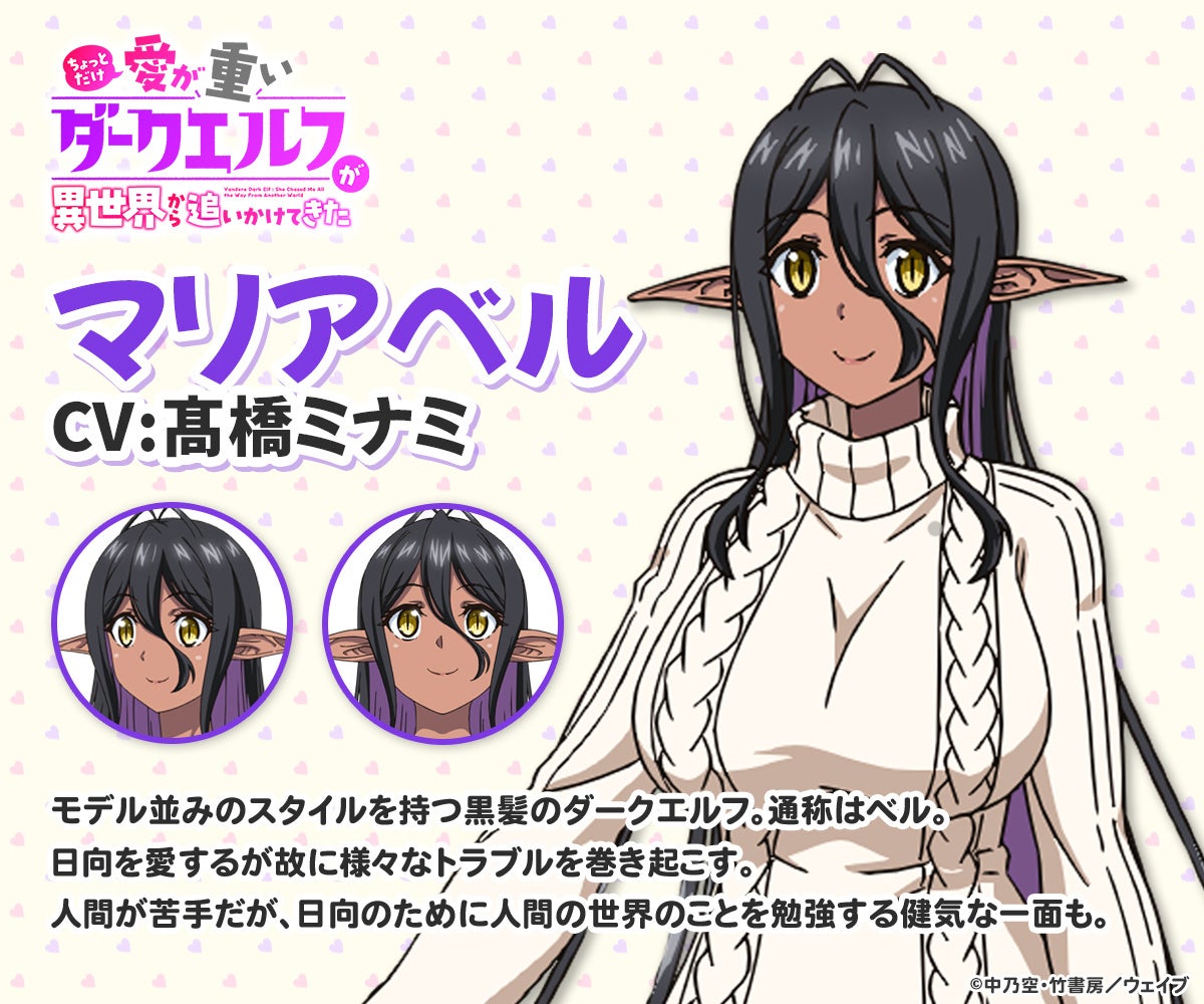 「WEBコミックガンマぷらす」(竹書房)にて好評連載中の中乃空原作の漫画が待望のアニメ化!話題の人気作品『ちょっとだけ愛が重いダークエルフが異世界から追いかけてきた』のティザーPVをお届けします。髙橋ミナミさん演じるマリアベルの映像を初公開!アニメとなって動く・喋るマリアベルをちょっとだけお届けします。