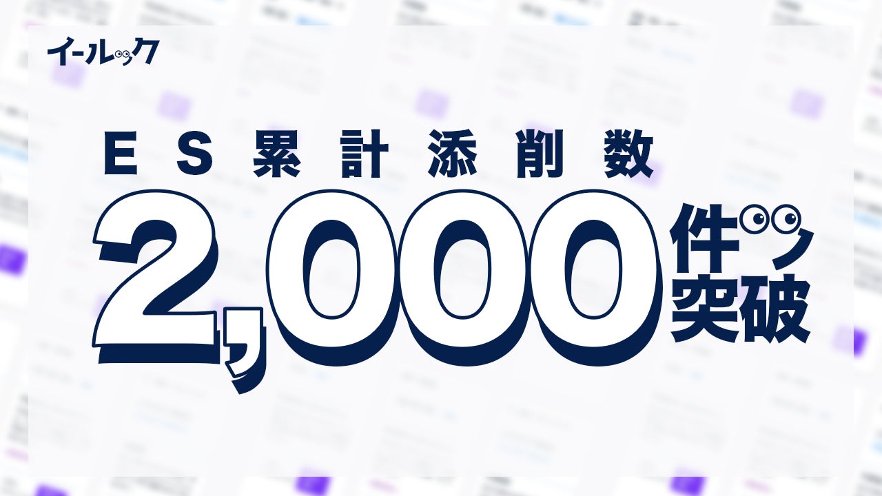 人材紹介・採用支援事業を行う株式会社HR team(本社:東京都渋谷区、代表取締役社長:上原一輝、以下「HR team」)( https://hr-team.co.jp )が運営している、エントリーシートの添削依頼できるサービス「イールック」は累計添削数2,000突破したことをお知らせします。
