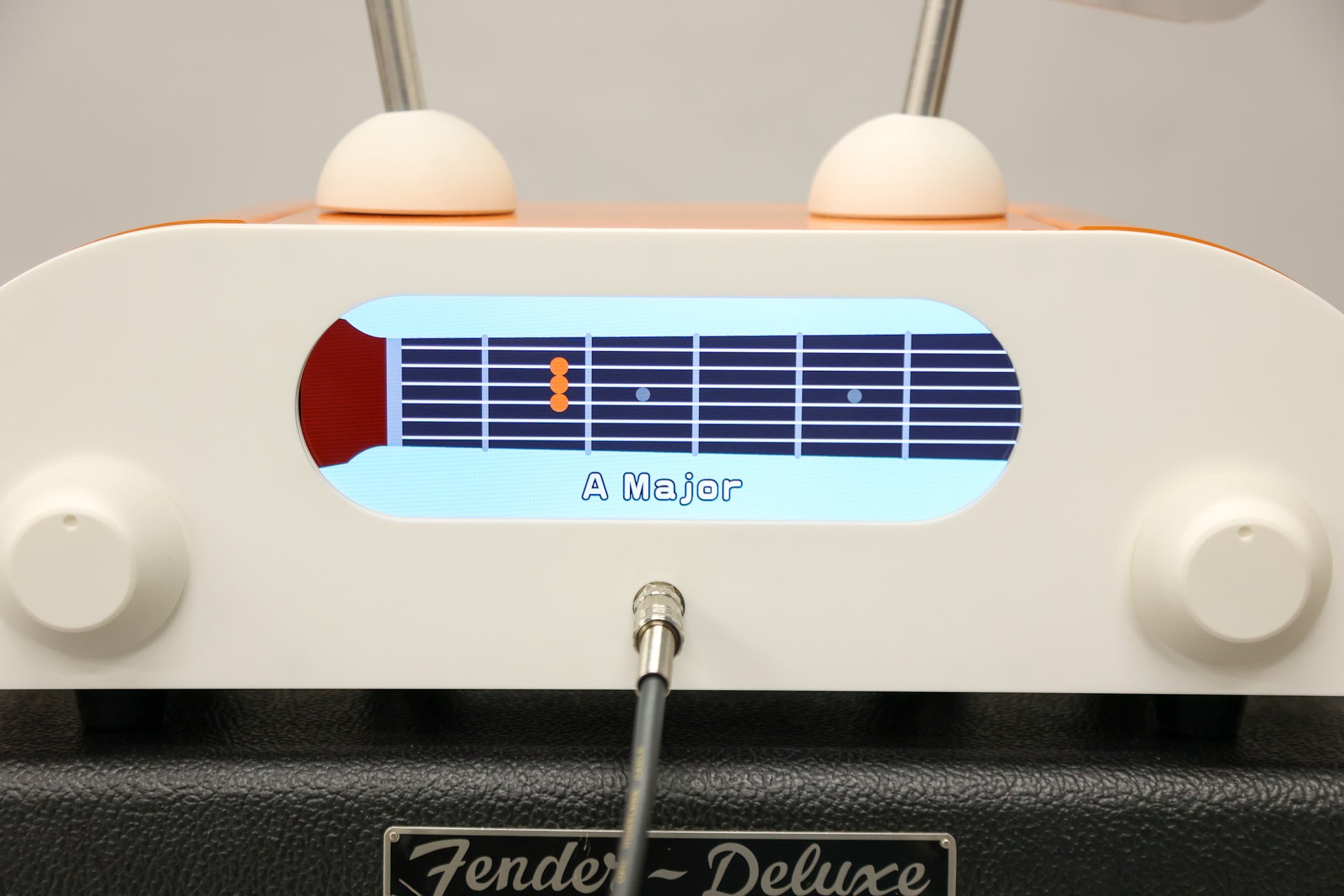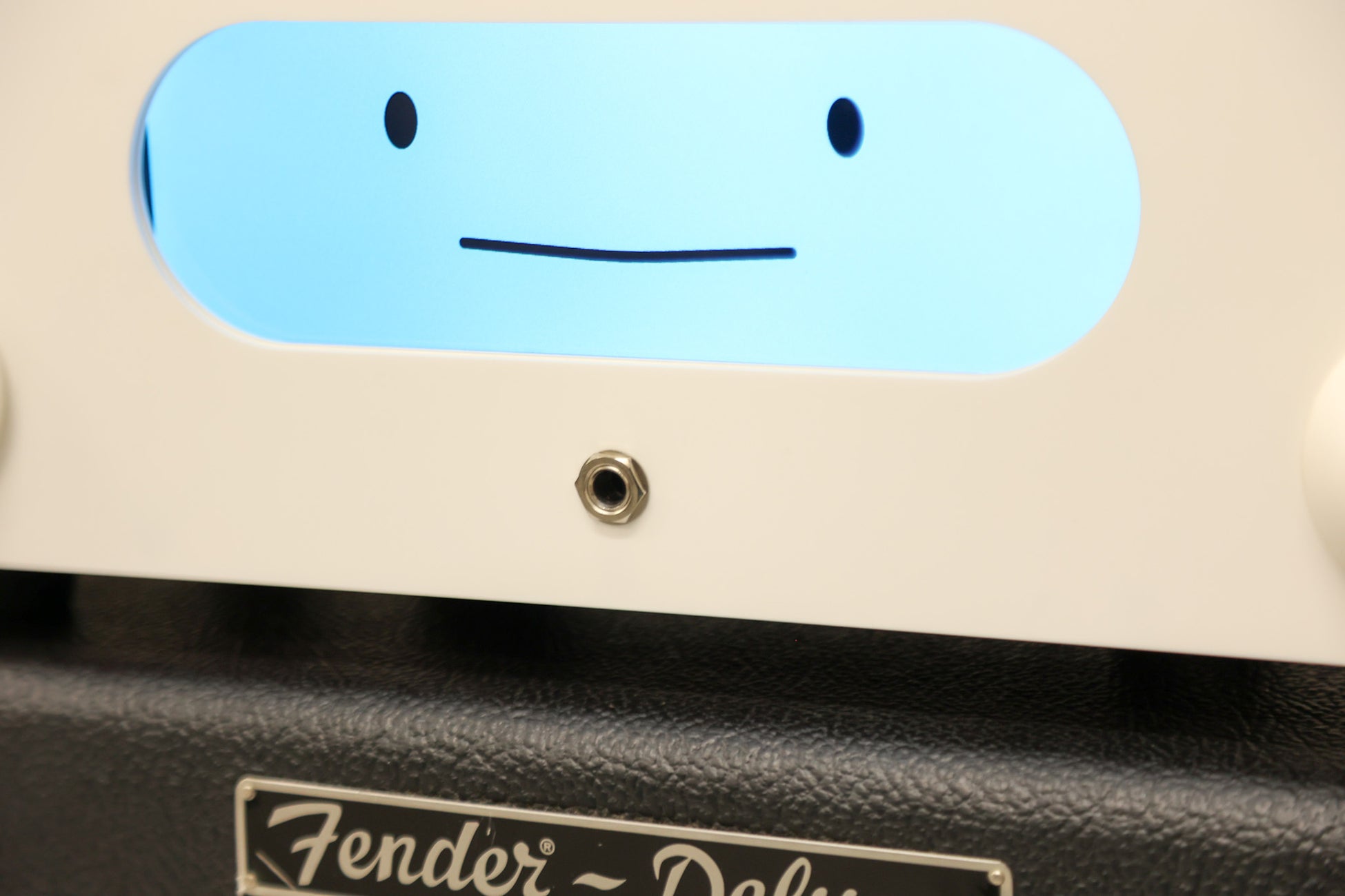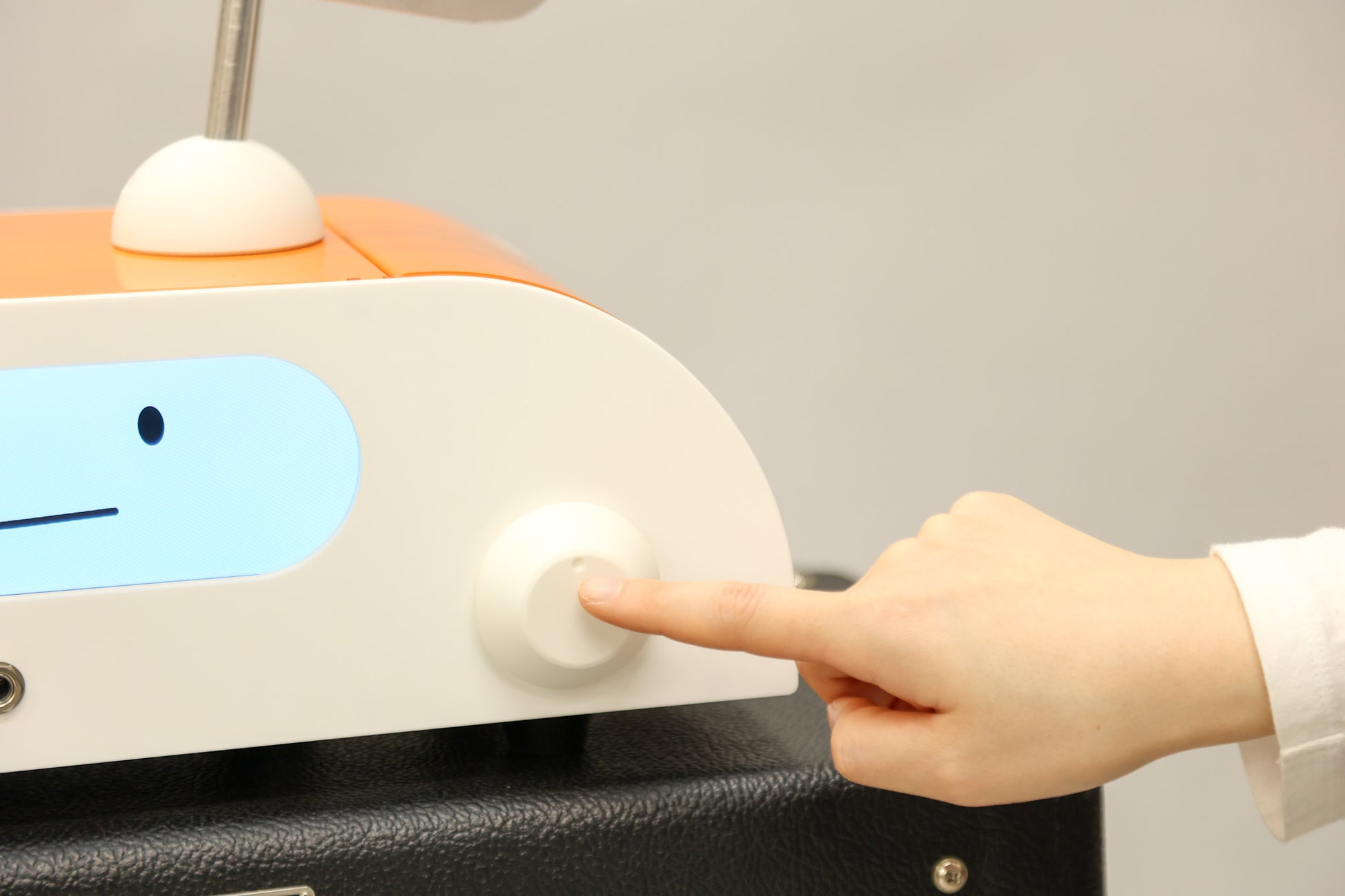 実際の演奏体験は、表情パネル(液晶パネル)下部のジャックにギター(ギターシールド)を接続するとスタートします。いくつかのコードを表情パネルに表示するほか、弾けているかどうかを感知する機能も備えています。最後は『マティモ』が奏でるリズムに合わせて一緒に演奏することができ、ギターの試奏にハードルを感じている方でも楽しい試奏体験をしていただけます。
